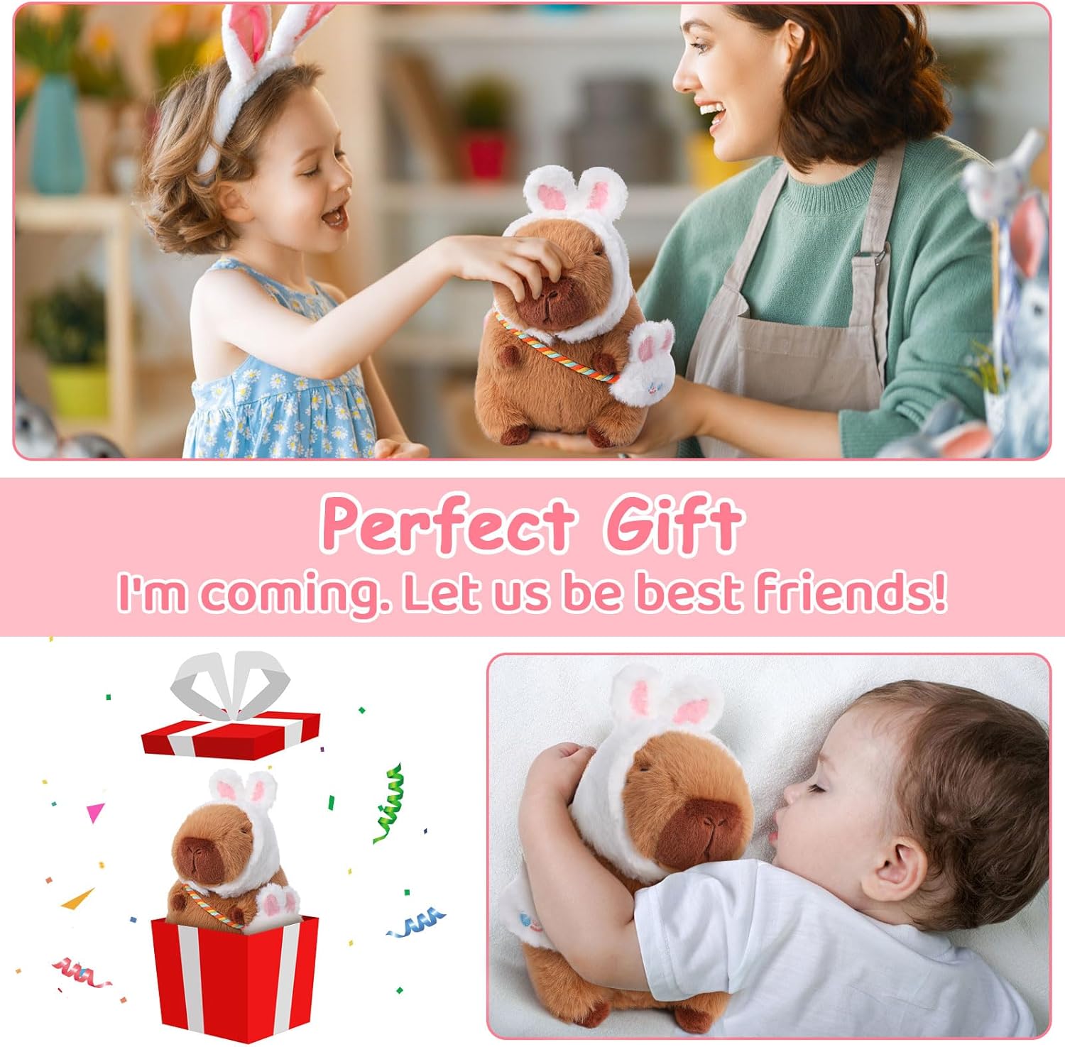 【Perfect Easter Gift for Kids Adults】 Our cute capybara plushies are the perfect presents for special occasions like birthdays, Christmas, Valentine’s Day, Children’s Day, Halloween, Thanksgiving, and more. Select these capybara plushies to express your care and affection for your loved ones.