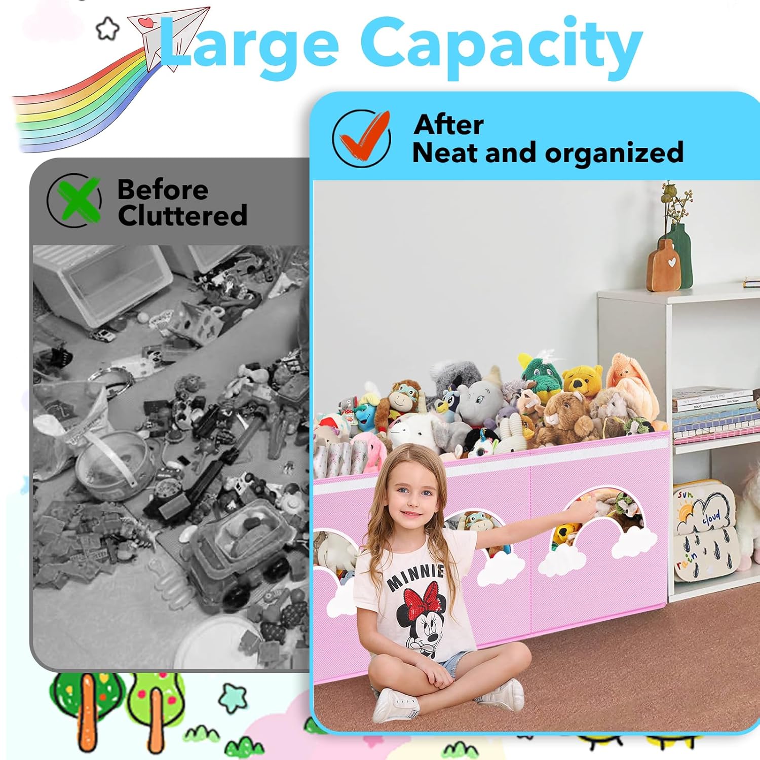 【Transparent Window 】 – The clear see-through window is very user friendly for clear showing what is inside the storage boxes, easy to organize and easy to find. Cartoon shaped toys with colorful fabric, not only as a toy storage box is also a room decoration, making your room more interesting and colorful sense.