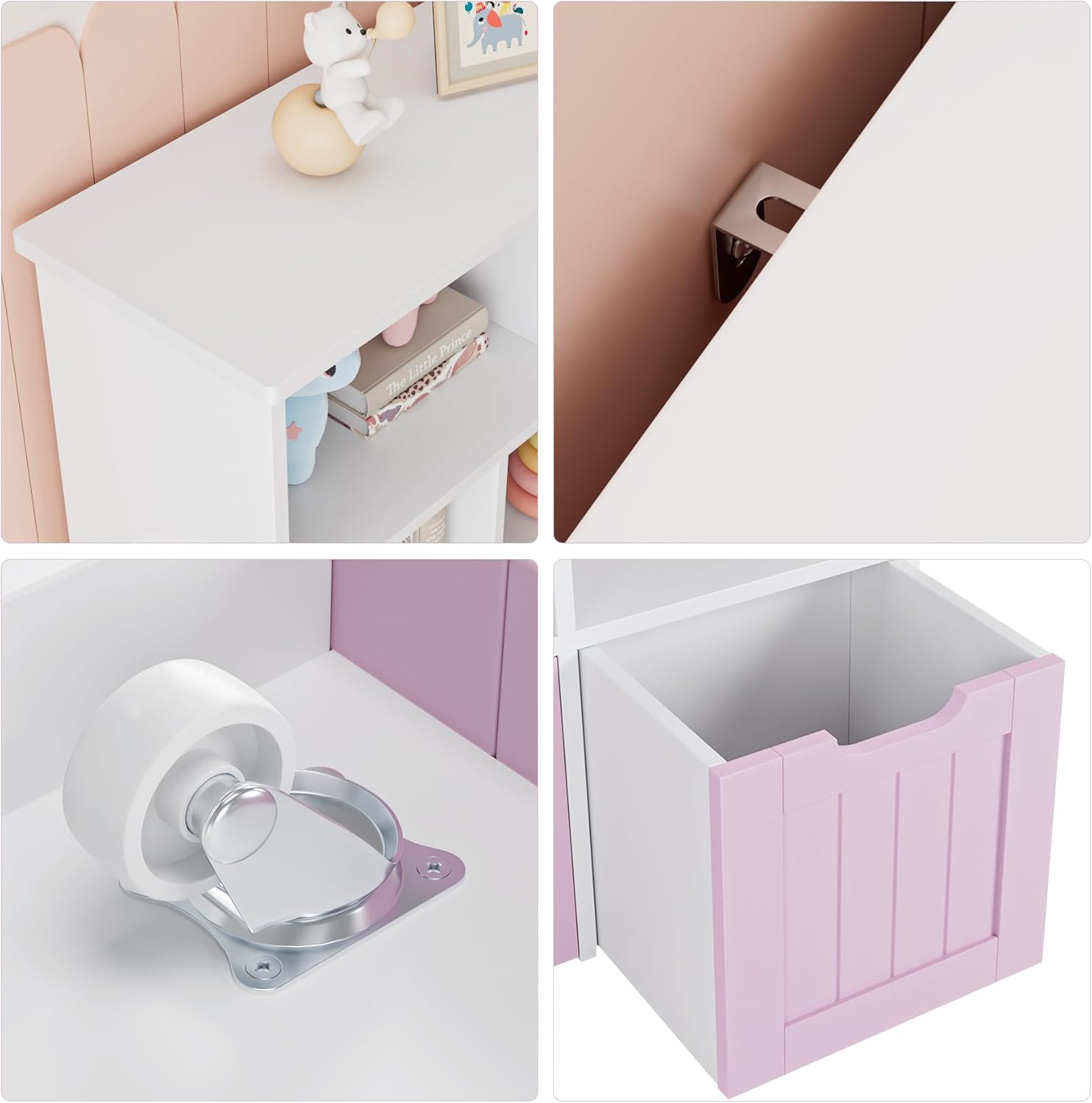 【Designed with Safety in mind】The toy storage box comes with a metal anti-tip anchor to enhance safety. And the rounded corners of the top board prevent a potential collision. With smooth-running drawers on the floor, your items can be easily stored or taken out. You can rest assured to have this toy chest.