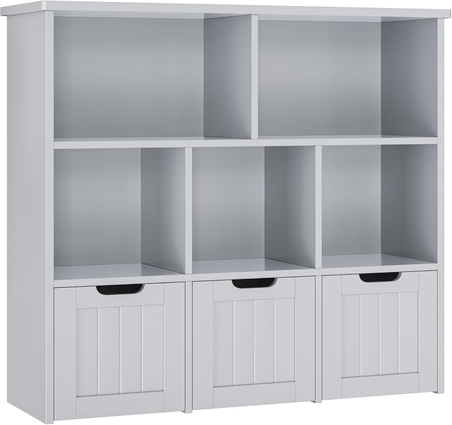 【Ample Storage for Various Needs】The spacious tabletop can place a clock or nightlight, 5 storage cubes make it easy to grab off favorite books or toys, while offering tons of ample open storage space. 3 Deep drawers with wheels allow you to tuck away games, puzzles, etc. The toy storage organizer with 3 drawers is an ideal choice for small rooms that require storage.