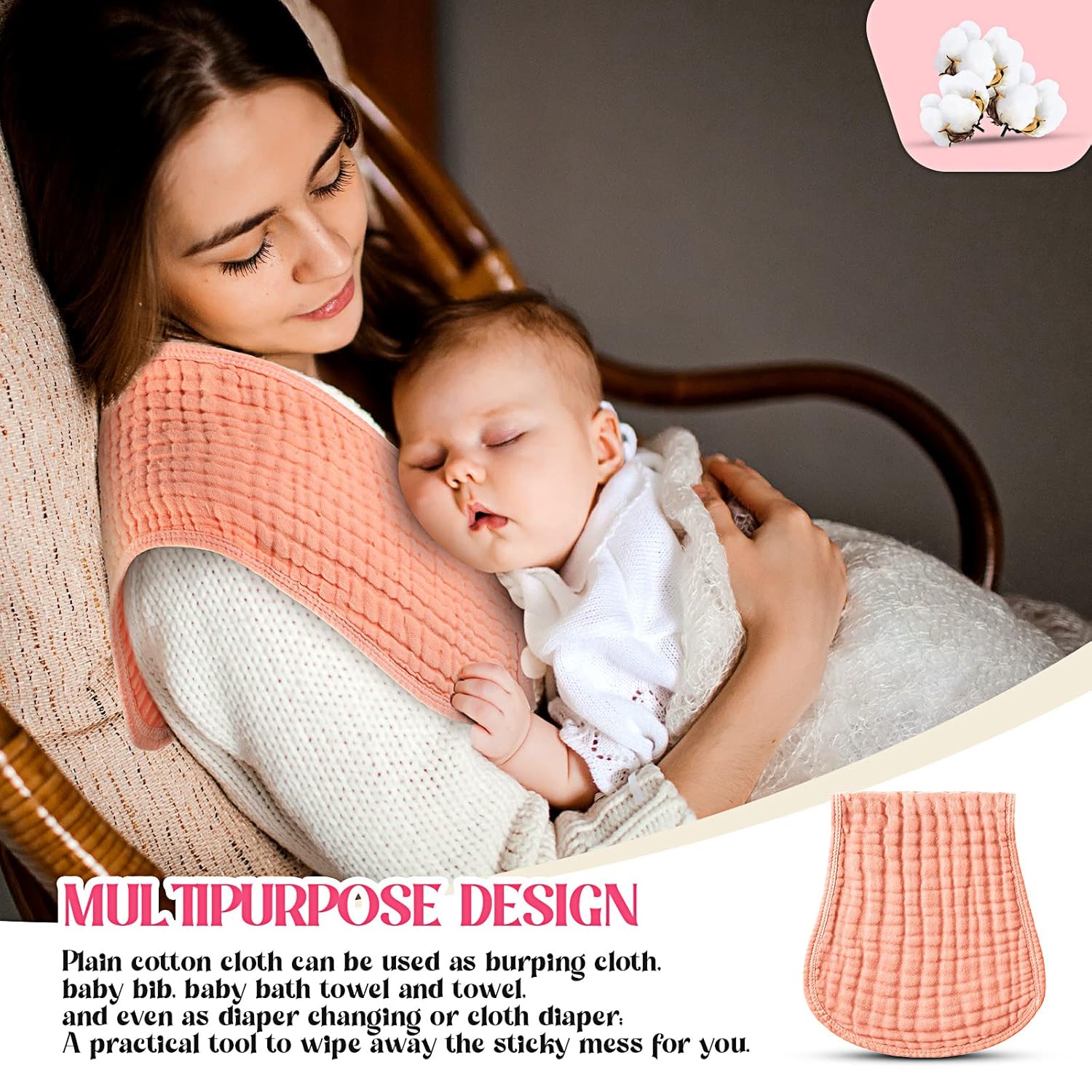 6 Layers Design: the burp rags are designed with 6 layers, which are thick enough to absorb the liquids, easy to wipe the saliva and sweat, offering your baby a comfy and refreshing feeling