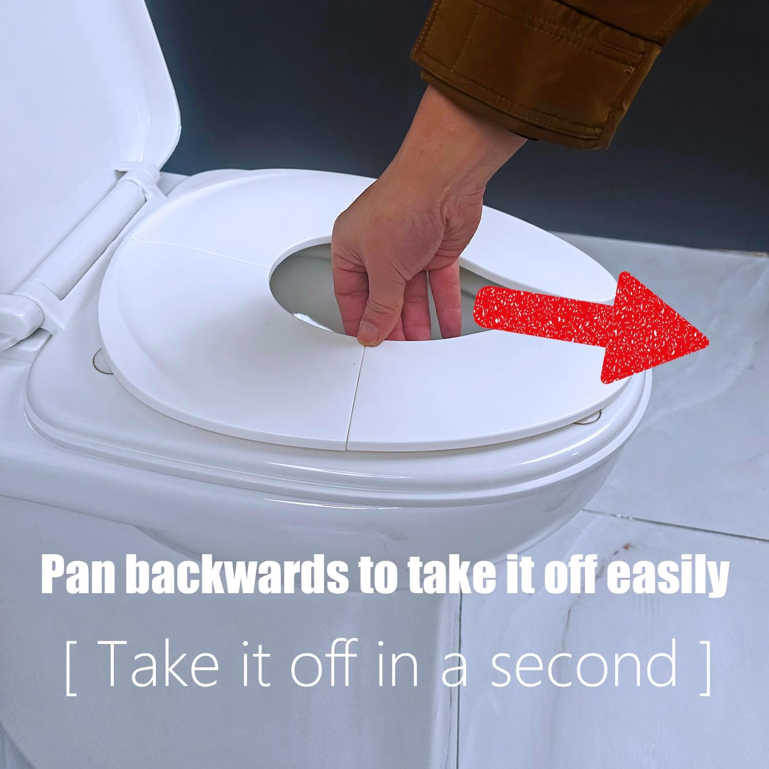 Newly upgraded model, when the hinge of this portable potty seat is fully open, it is in a locked position, so he can completely avoid getting his butt pinched.