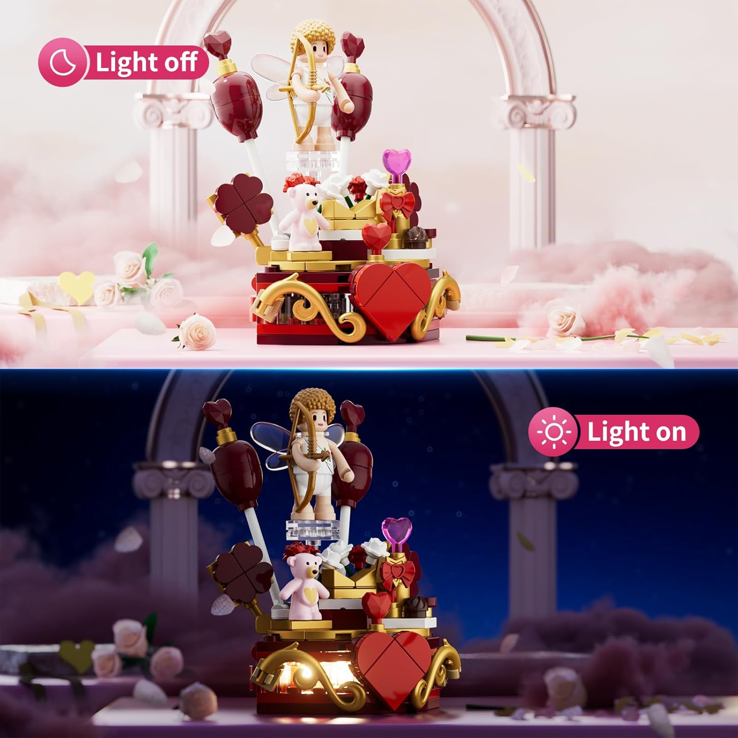 Exclusive Lighting Accessories (Batteries Not Included): An LED light is positioned inside Cupid’s gift box. When the switch is turned on, the light not only illuminates the contents but also shines through the transparent pieces, enhancing the festive atmosphere.