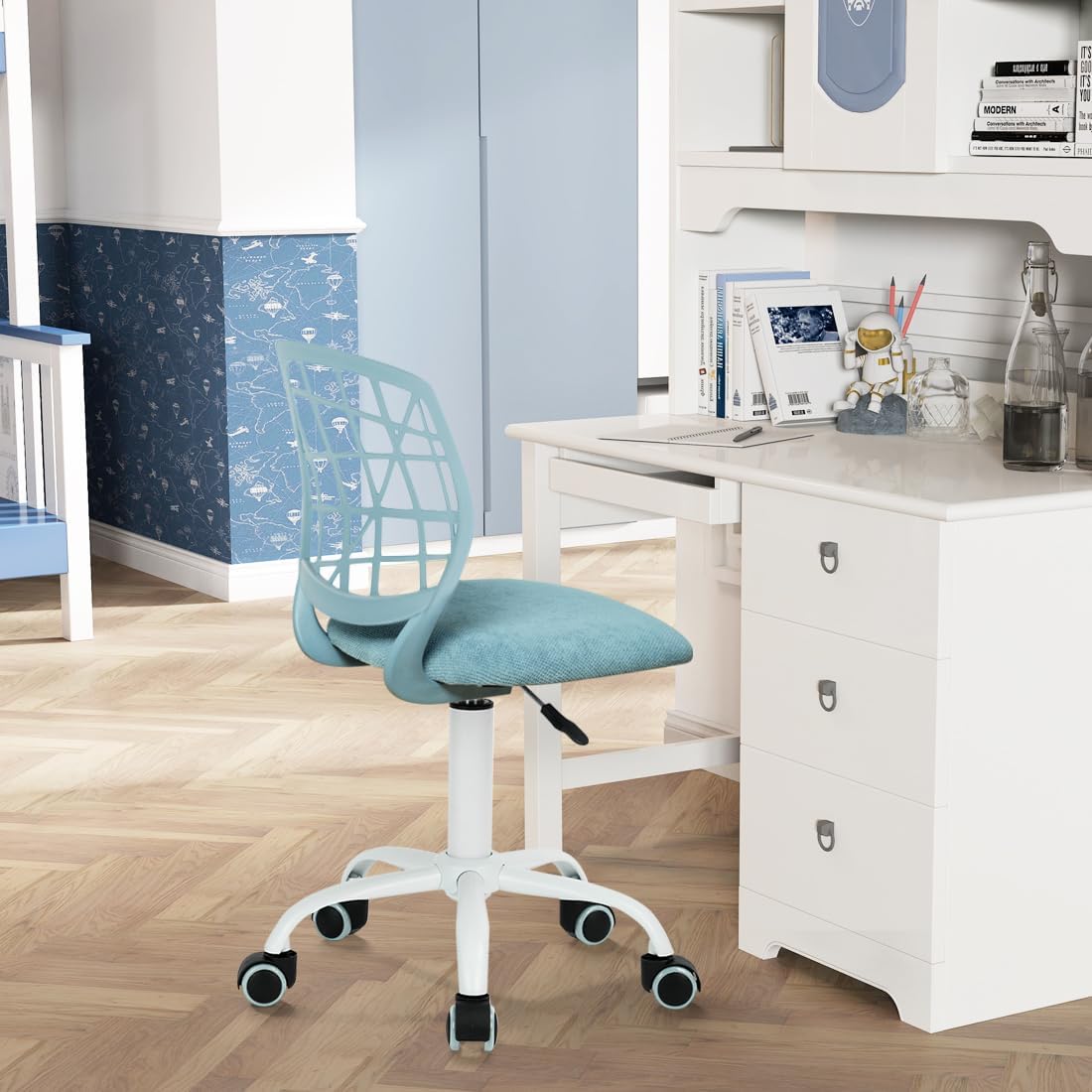 【360° Rotating Universal Casters】The chair features rolling universal casters for effortless movement across different floor surfaces, ensuring maximum flexibility and ease of use while minimizing noise and preventing floor damage. Colorful chairs are ideal for children to learn and read. Compact design suitable for bedroom, children’s room, office, etc..