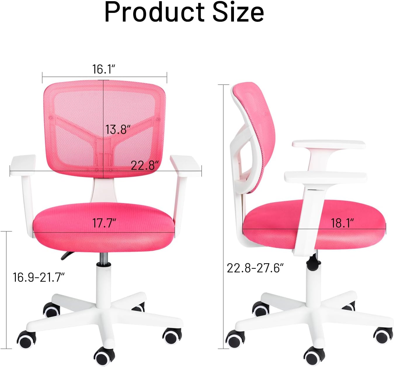 FurnitureR Desk Chair, Students Computer Task Chair Mid-Back, Cute Study Chair w/Lumbar Support Adjustable Swivel Chair Mesh with Rolling Wheels for Home Bedroom School, Pink