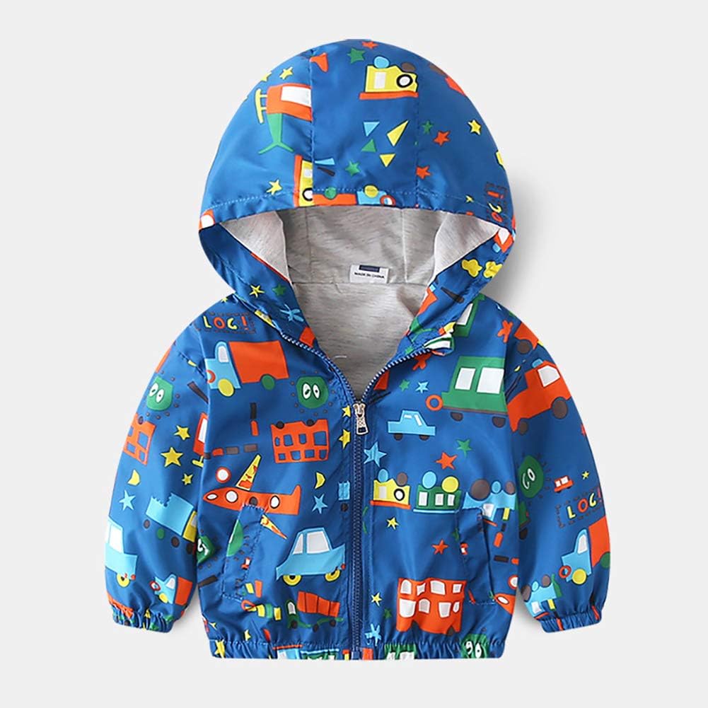 Toddler Rain Jacket Baby Boys Girls Zipper Hoodie Jackets Coat Cartoon Dinosaur Windproof Outerwear Sweatshirt