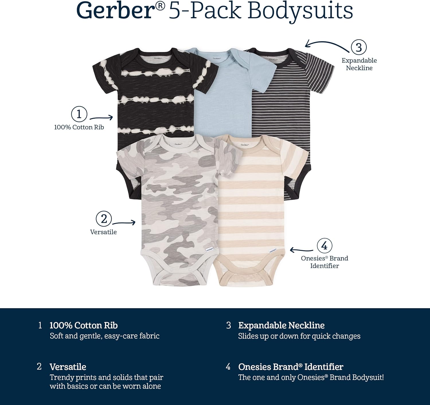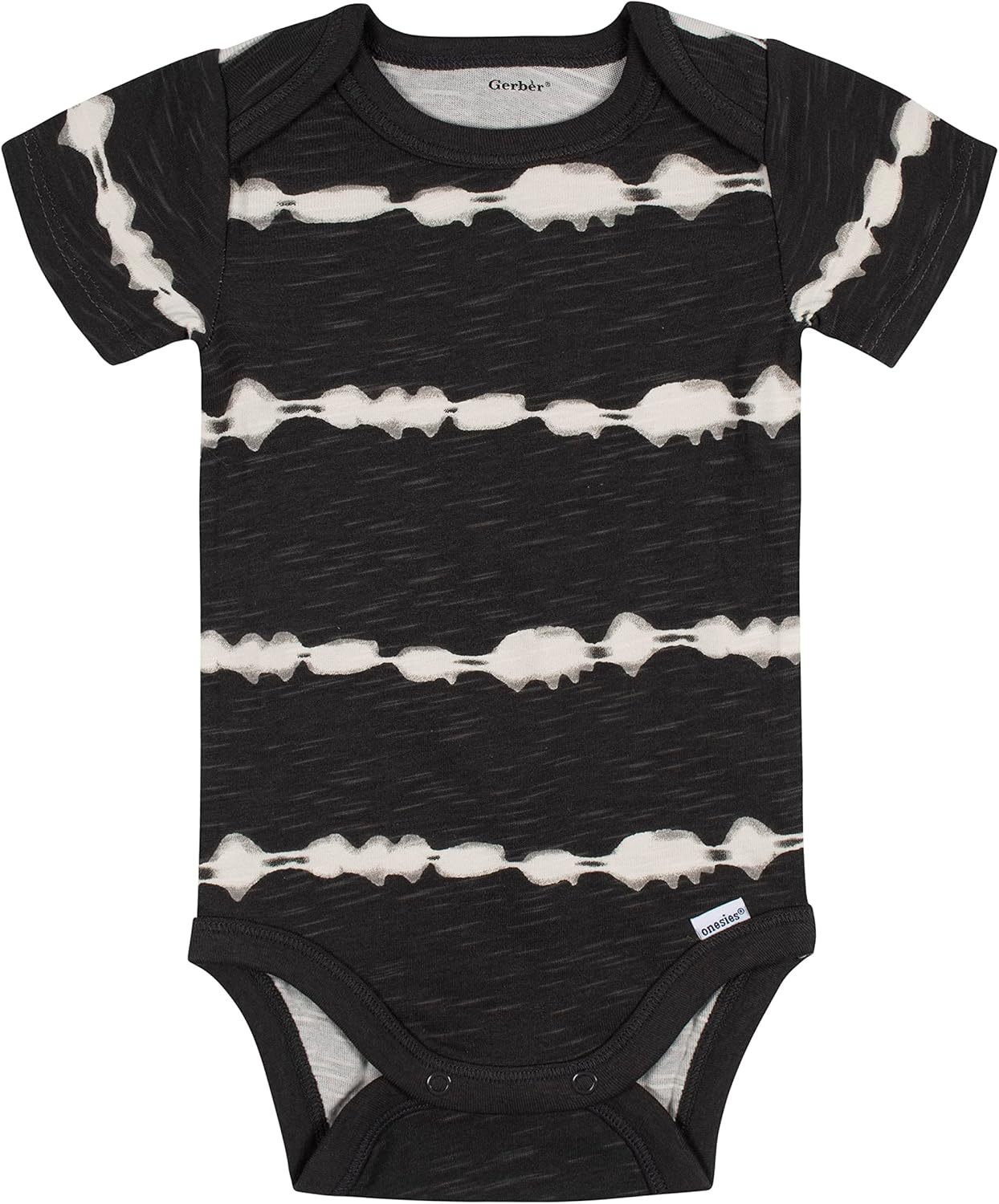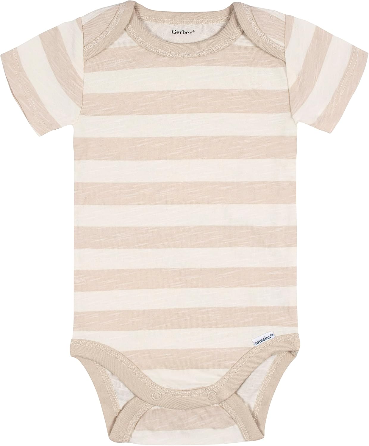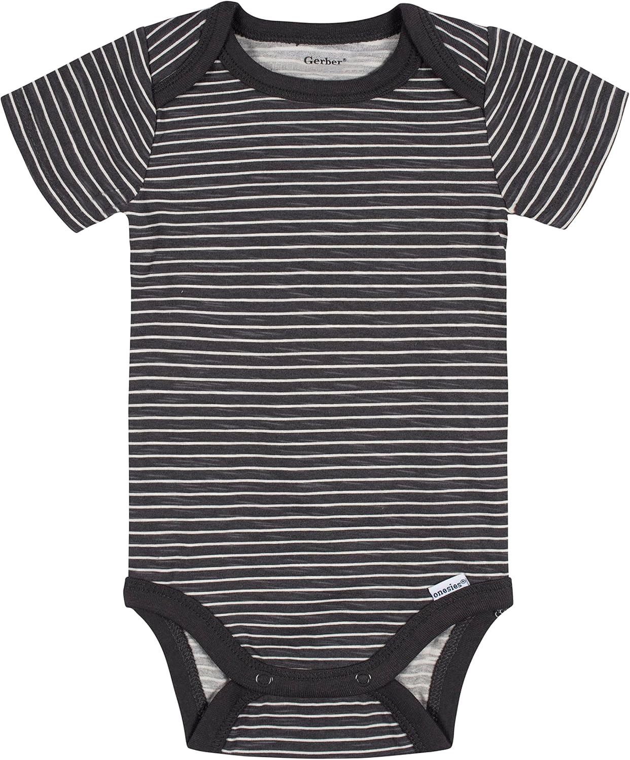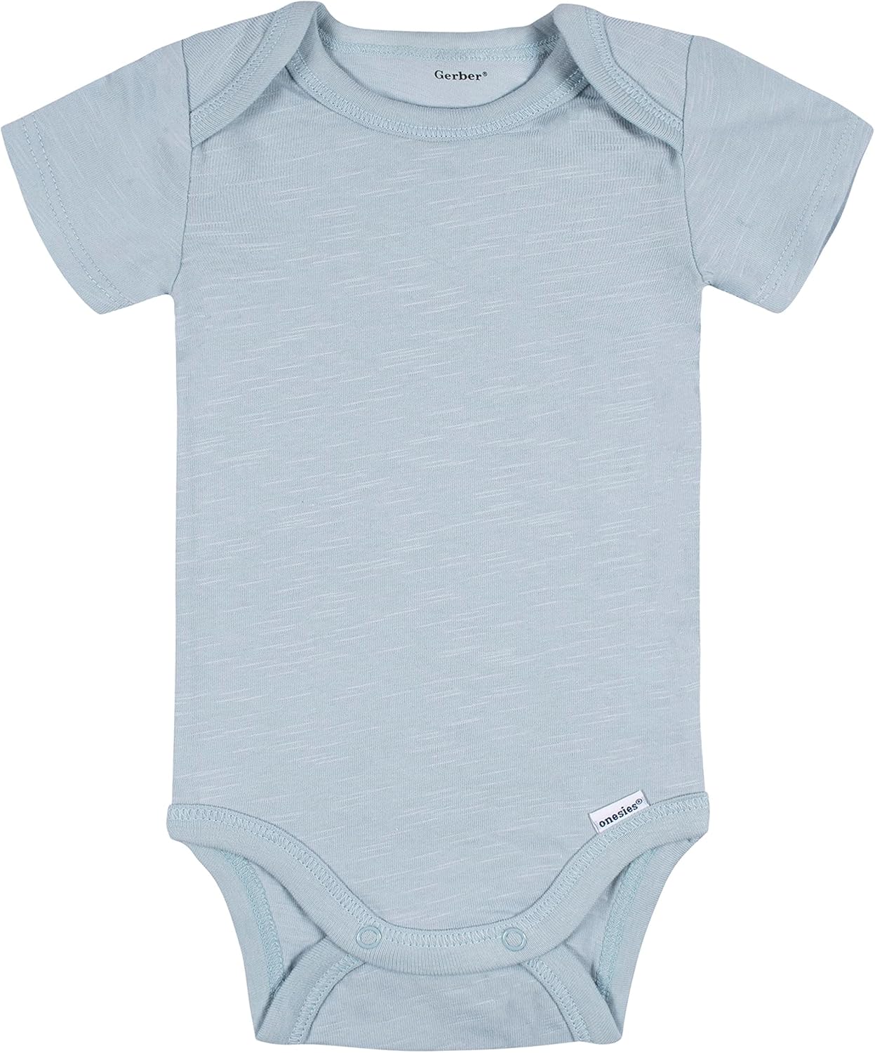 Your little boy will start the day looking his best dressed in one of these Gerber Onesies brand short sleeve bodysuits! Moms and dads will appreciate the higher-in-the-front bottom nickel-free snaps closure that makes for fast and easy diaper changes. 100% cotton rib for breathability and comfort. Mix and match with your favorite bottoms to create a complete look. An essential item for new parents, great for gift giving.