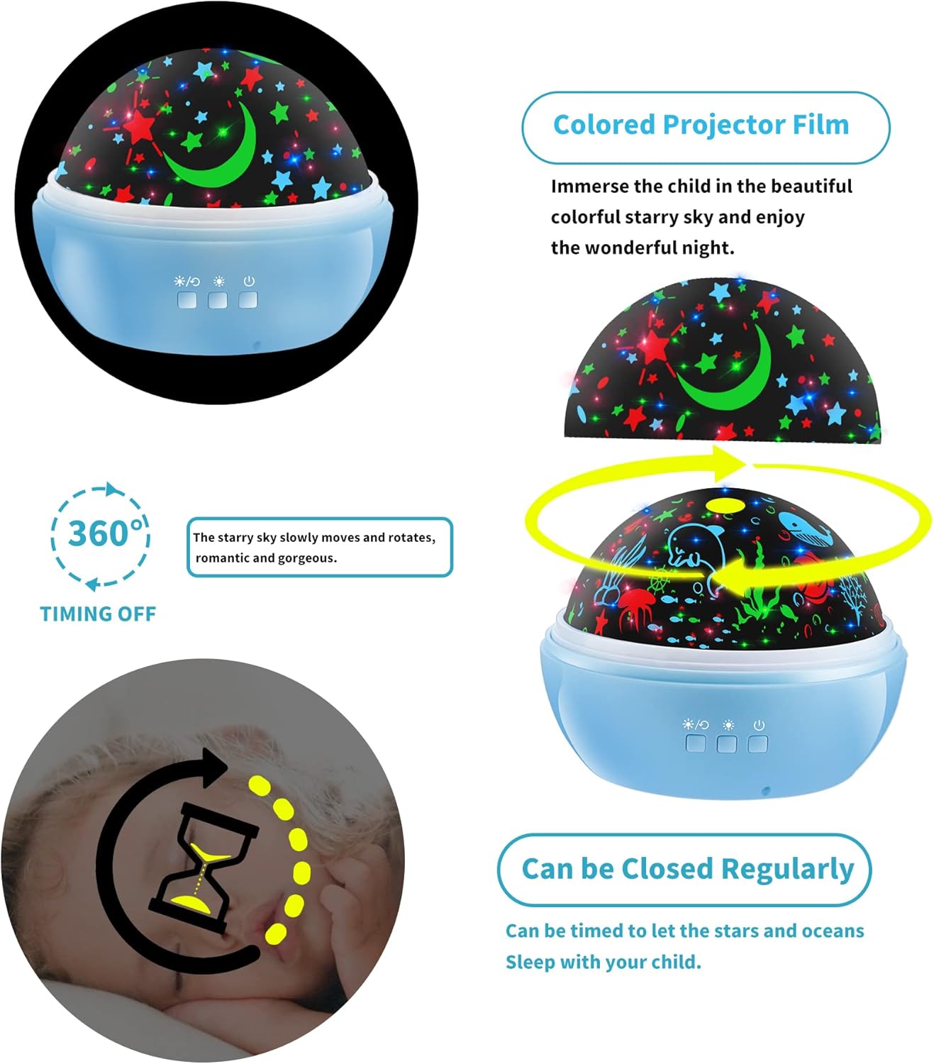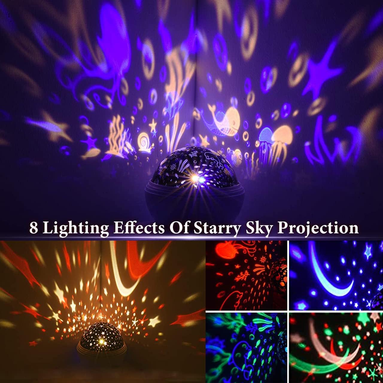 【starry sky projector & Ocean world】 – Remove the projection the outer cover and switch to night light mode. The light is soft and not dazzling and creates a comfortable sleeping environment in the bedroom. It is also a starry sky projector that can display the colorful starry sky and underwater world on the wall or ceiling of the room in all directions, creating a warm and romantic atmosphere.