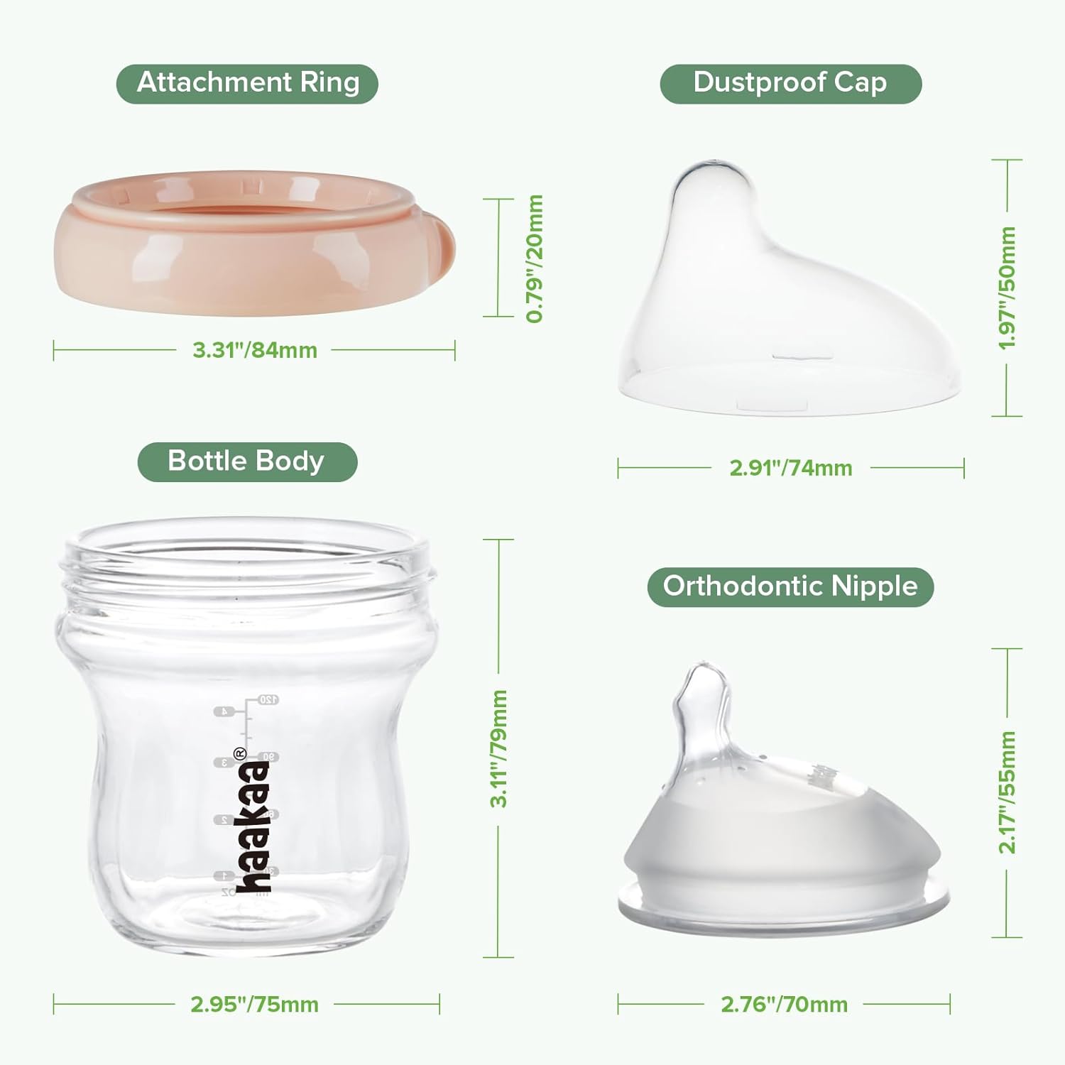 𝐂𝐎𝐌𝐏𝐀𝐓𝐈𝐁𝐋𝐄 𝐖𝐈𝐓𝐇 𝐇𝐀𝐀𝐊𝐀𝐀 𝐆𝐄𝐍. 𝟑 𝐀𝐓𝐓𝐀𝐂𝐇𝐌𝐄𝐍𝐓𝐒:These newborn bottles are designed to work with the Haakaa Gen. 3 attachments, including the Sippy Spout and Sealing Disk. Available in multiple flow rates to support your baby’s growth.