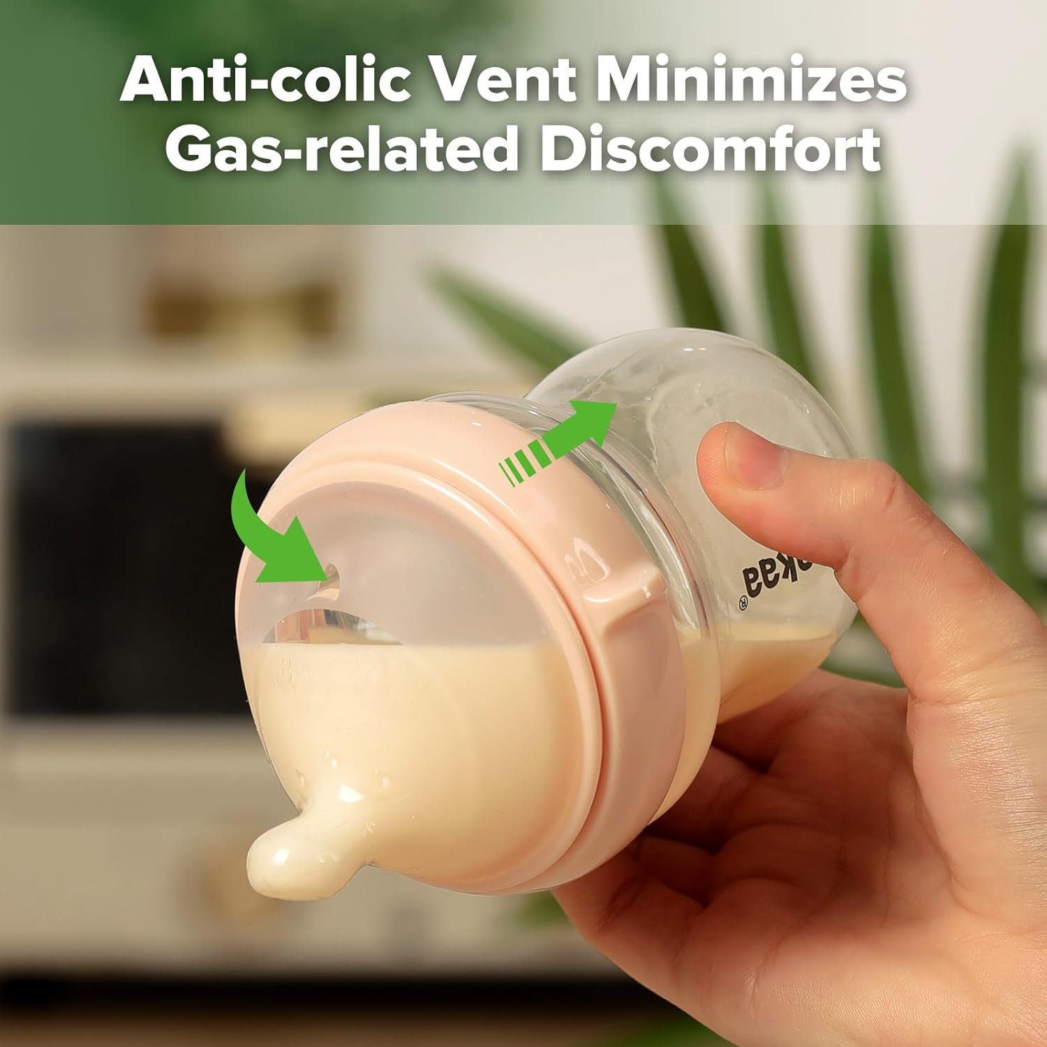 𝐀𝐍𝐓𝐈-𝐂𝐎𝐋𝐈𝐂 𝐕𝐄𝐍𝐓𝐒 𝐅𝐎𝐑 𝐂𝐎𝐌𝐅𝐎𝐑𝐓:Equipped with anti-colic vents, our glass baby bottles reduce air intake, helping prevent gas and colic for smoother, more comfortable feedings.