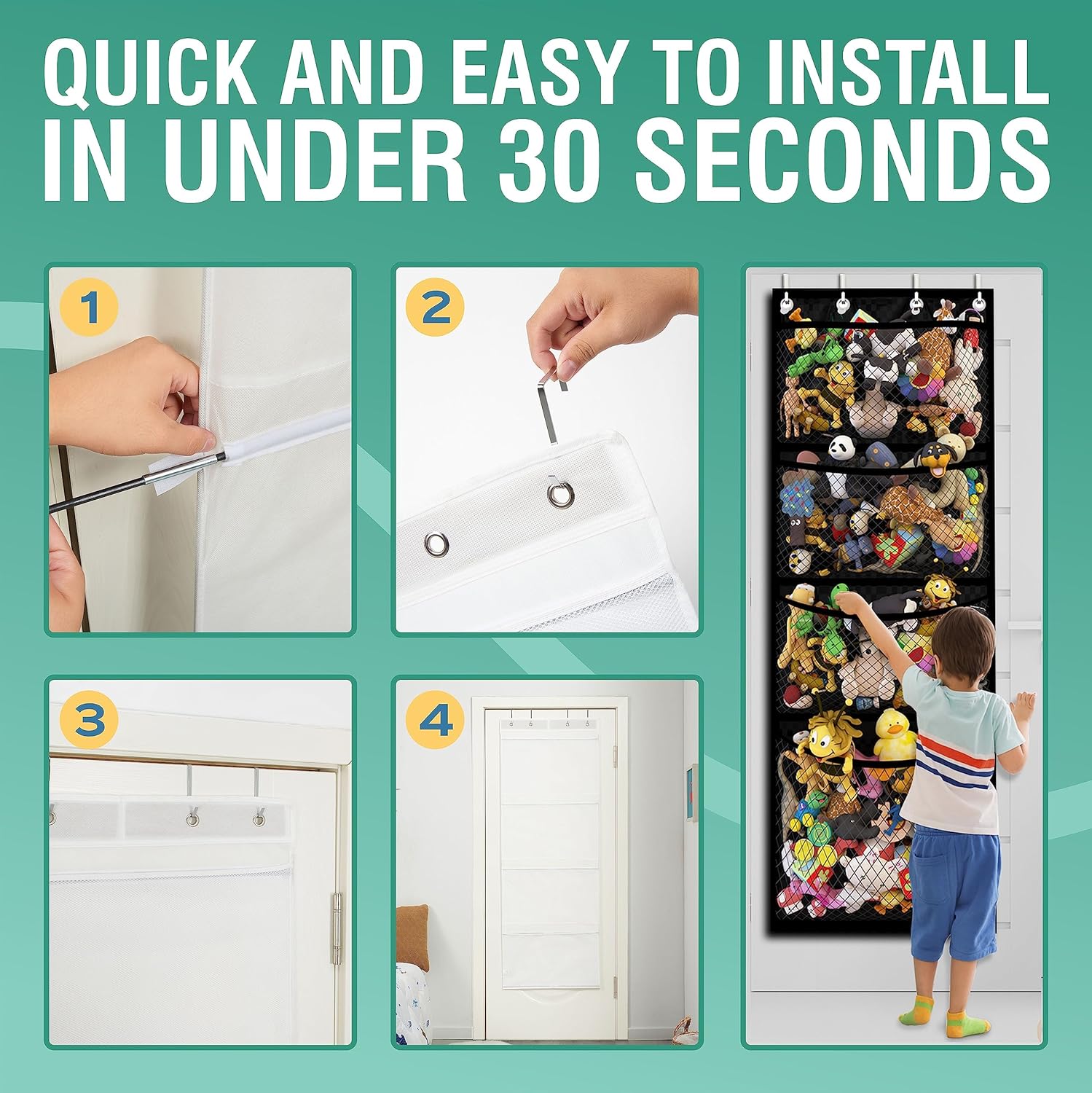 🧸 BUYER SATISFACTION GUARANTEE – While typical ideas for displaying stuffed animals take up valuable shelf and floor space and keep stuffies out of sight or out of reach, this unique door storage alternative to bean bag storage, a toy hammock, or multiple baskets for stuffed animals comes with a full 30-day money-back guarantee