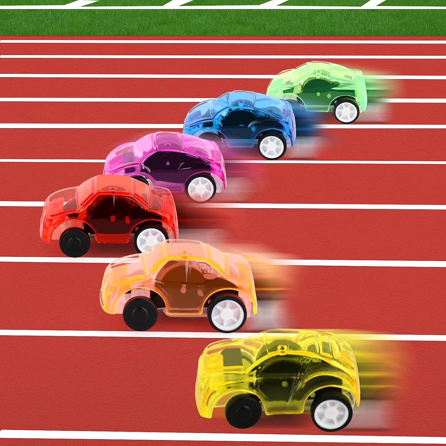Pull Back Car: Each pull back toy car is about 2 inch, lightweight, can be put in a pocket or bag, kids can play with them anytime and anywhere, such as waiting for dinner or classroom recess, plenty of quantity for multi-player party games
