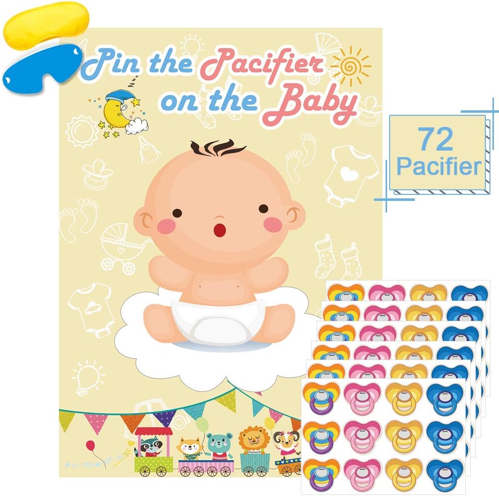 Pin the pacifier baby shower game set is perfect for baby shower celebrations, birthday party, carnival party, classroom party, school party, kids games and so on.