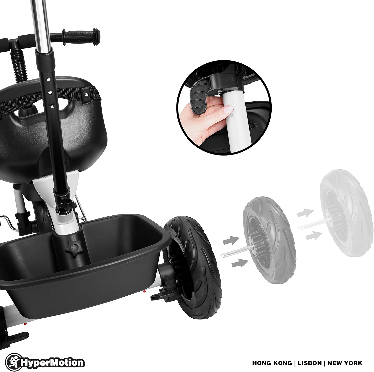 𝗣𝗮𝗿𝗲𝗻𝘁-𝗙𝗿𝗶𝗲𝗻𝗱𝗹𝘆 𝗣𝘂𝘀𝗵 𝗛𝗮𝗻𝗱𝗹𝗲: The tricycle includes a practical push handle for parental guidance and control, making it ideal for supervised riding and early lessons.
