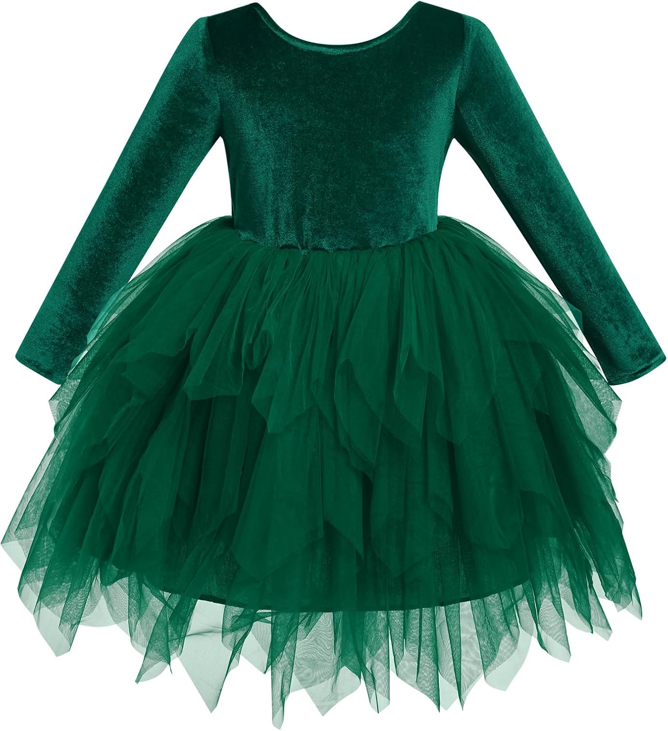 The fall winter long sleeve velvet asymmetric handkerchief hem tulle tutu dress princess Christmas birthday party wedding flower girl dress, gives your a sweetie a fashionable and unique feel in the daily life.