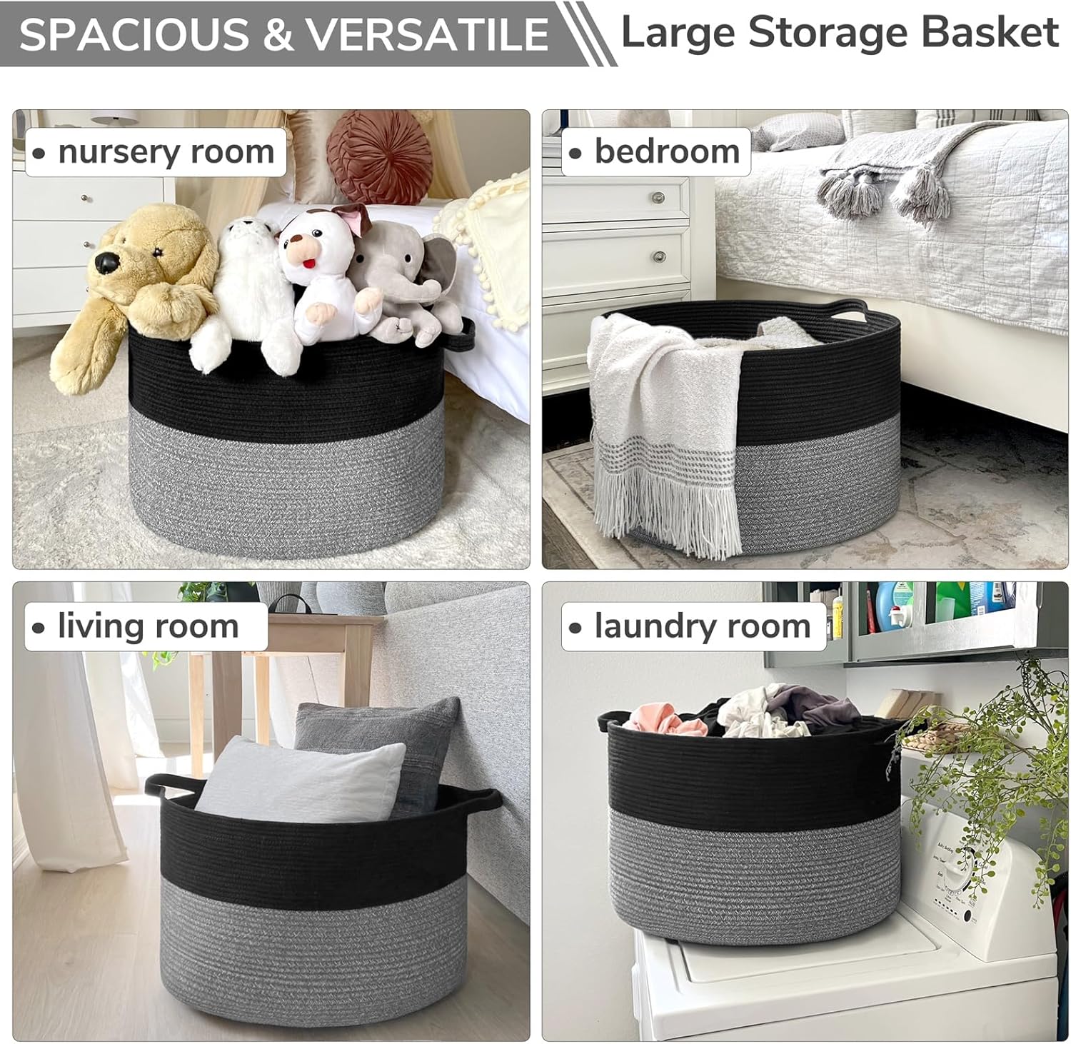 Handles design: Foldable handles, easy to move and take away, awesome practical cotton large storage baskets. Soft yet sturdy enough to stand up on its own