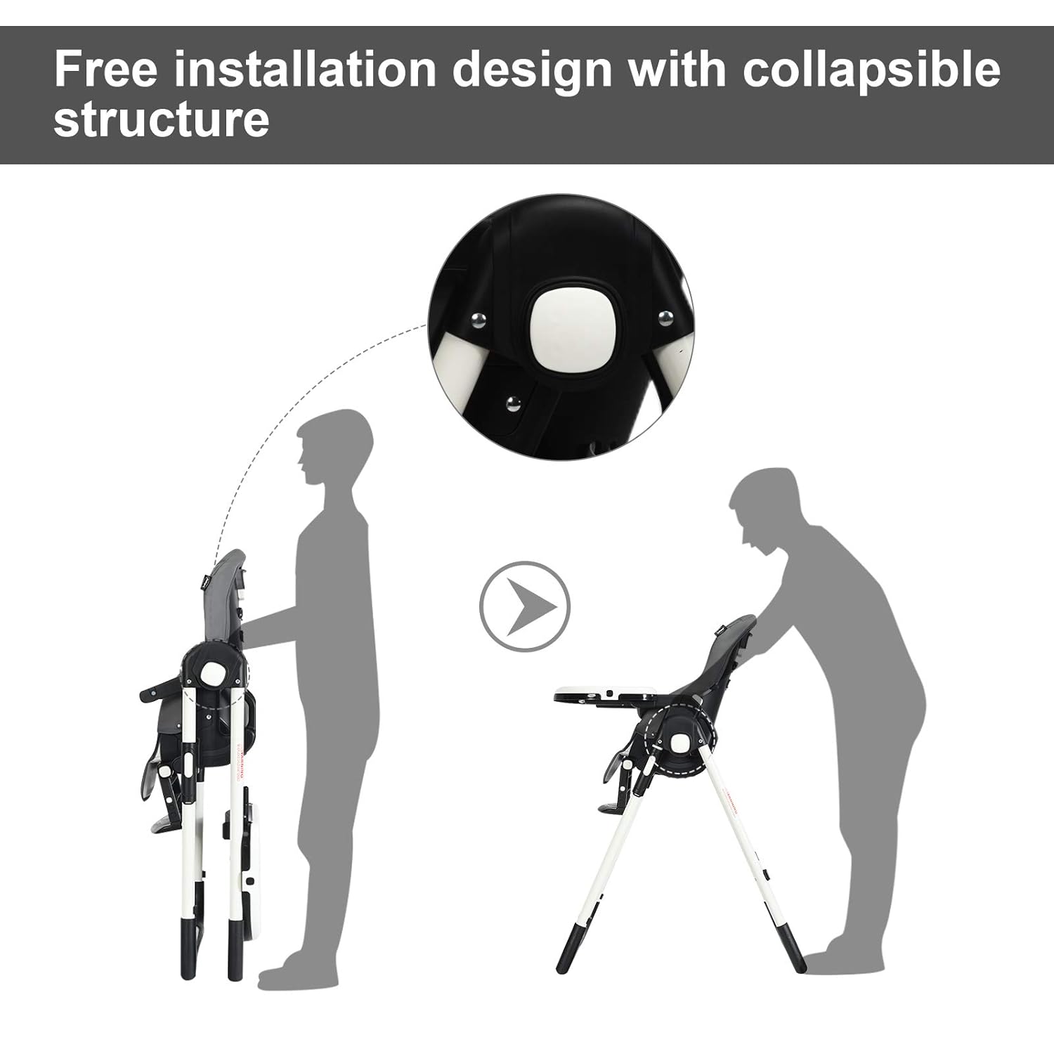 7 LEVELS HEIGHT ADJUSTABLE DESIGN: Our baby highchair has a user-friendly design that the seat height is adjustable with 7 positions. You no longer need to choose various high chairs to match different height tables in your home. Just buy one, you will have a versatile baby high chair to meet your furniture. We also use durable iron pipes as main structure to provide stable protection and avoid rollover caused by playfulness or external force.