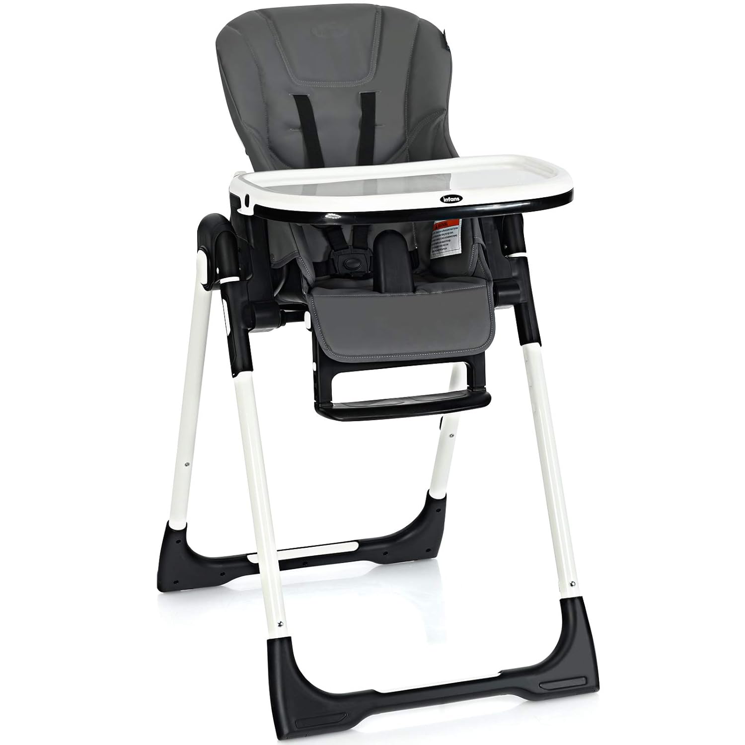 EASY TO CLEAN WITH DETACHABLE DESIGN: Cleanliness has always been a top concern for baby products. Contact with detachable trays and seat cushion, our baby high chair is easy to clean and maintain after daily use. The removable PP top tray is also dishwasher safe. And the PU leather cushion is waterproof that you just need to wipe the smudges with a clean cloth. 5-point safety harness ensures security for your little baby. All the corners of our baby highchair are smooth without sharp edges.