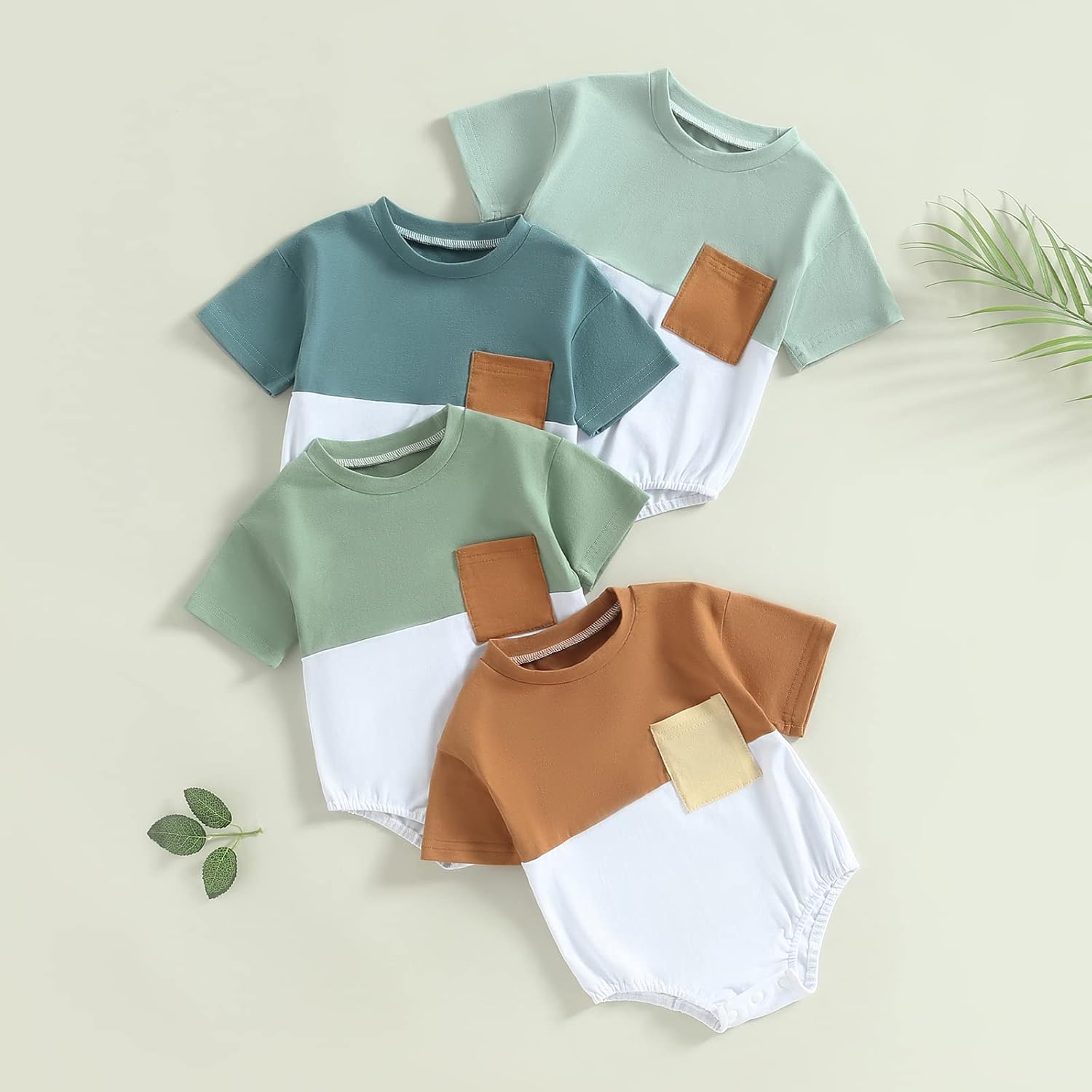 Infant Baby Boys Summer Romper Outfit Color Block Jumpsuit Casual Onesie Summer Clothes