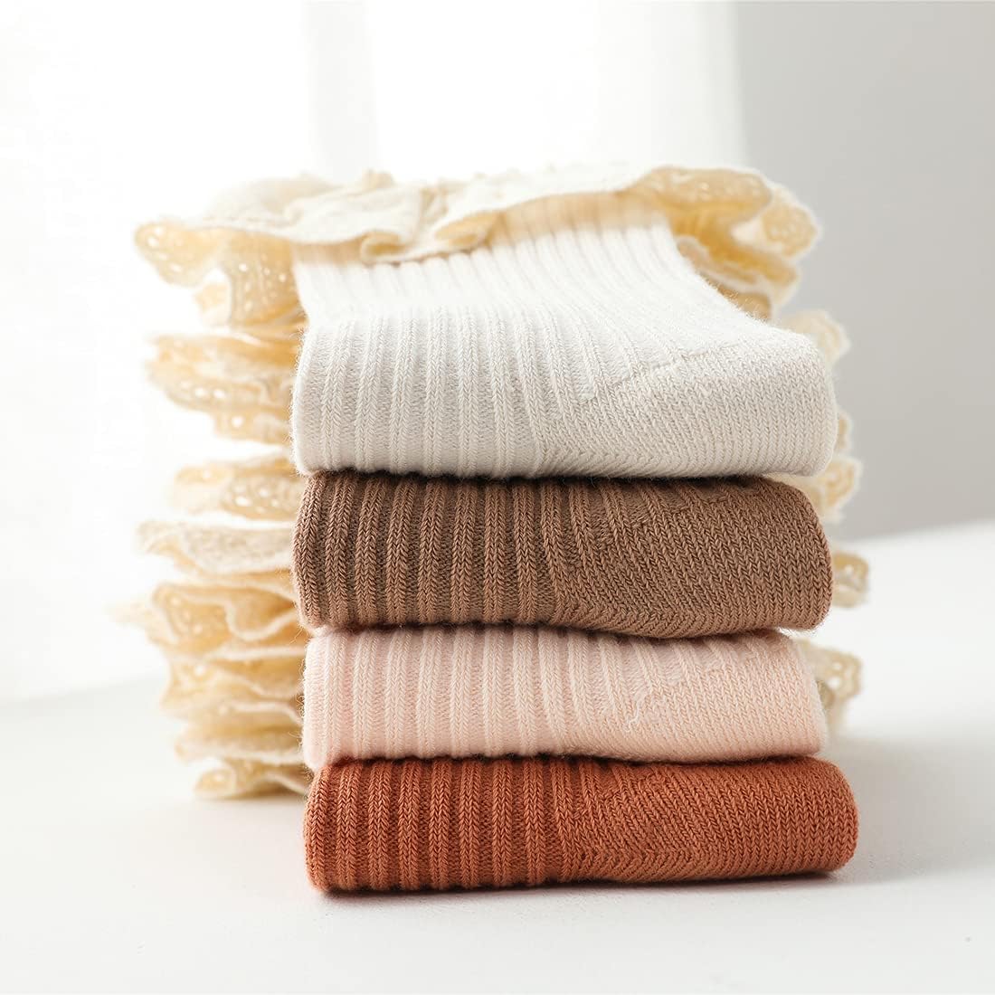 Ruffle Dress Sock Style: Lace trim eyelet design, is breathable for baby and kids skin; Bowknot lace trim style, cute and eye-catching.