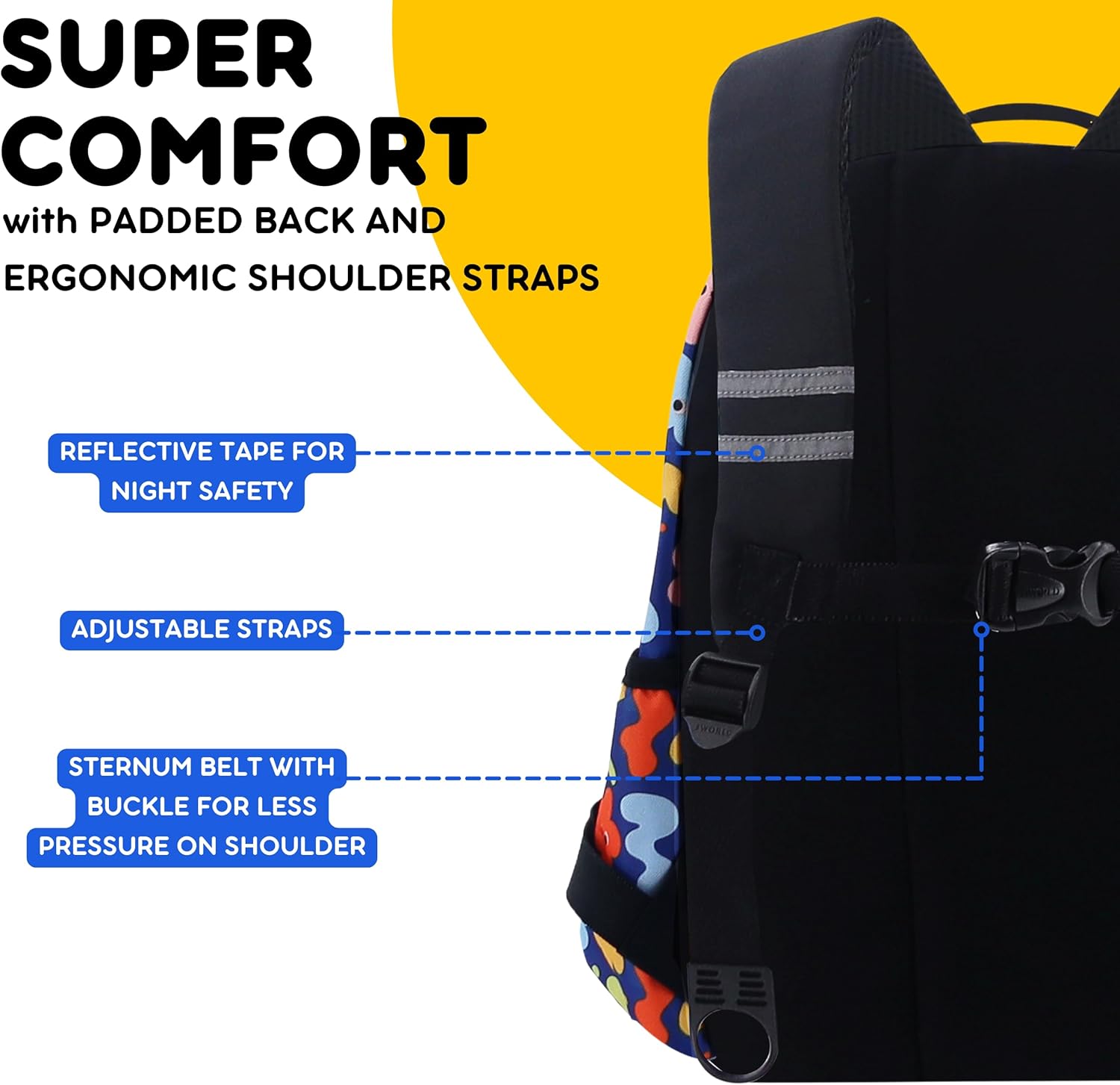 Easy to Organize — This elementary school backpack has a main compartment with laptop sleeve, large front pocket, internal organizer and 2 side water bottle pockets. Made of heavy 600D ripstop polyester, School bookbag measures 16 x 13 x 6 inches