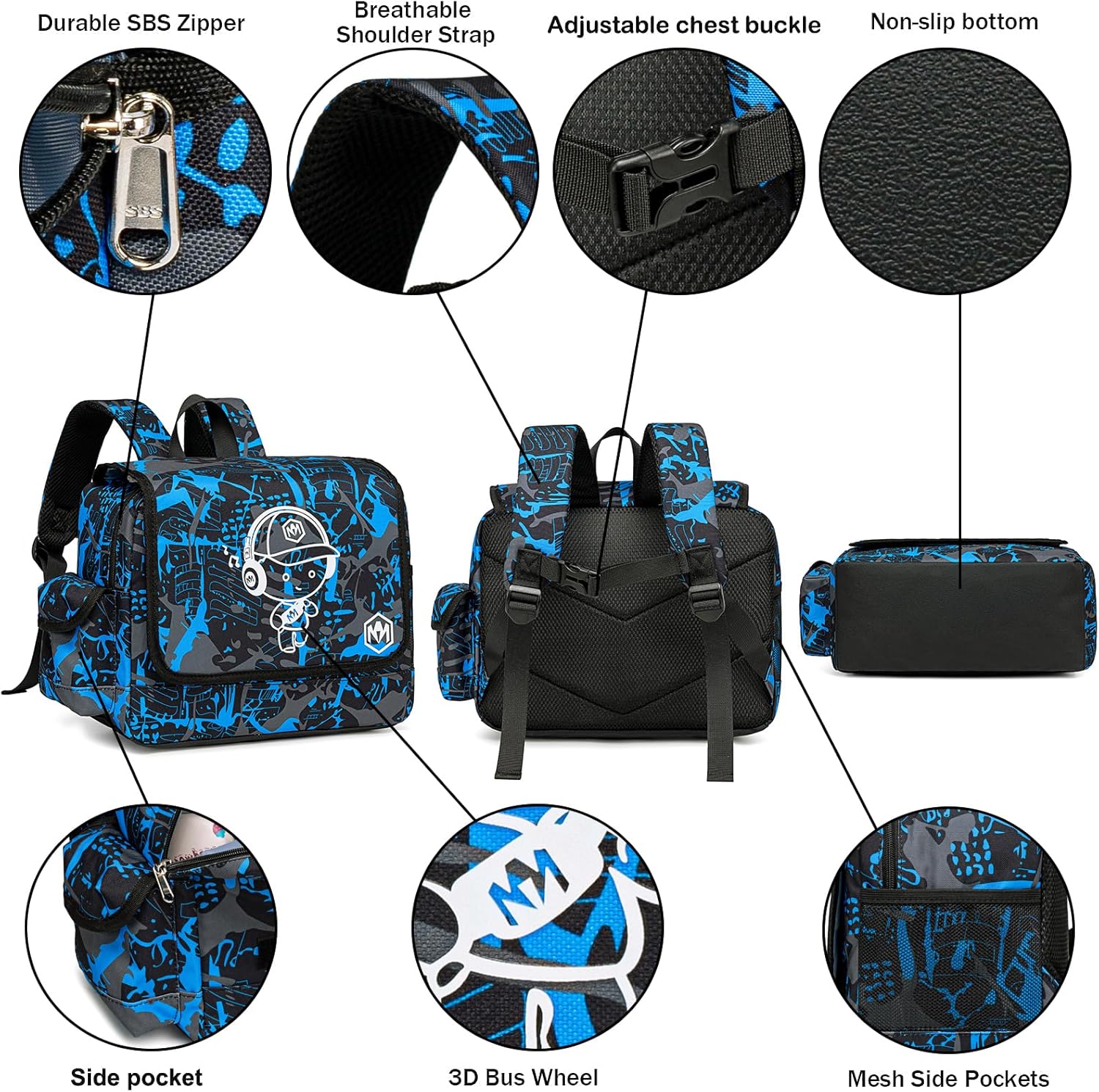 Strong and Durable Prek Backpack – Sturdy kids boys kindergarten backpack made of lightweight oxford material which is water resistant and easy cleaning, durable SBS zipper, seam smooth and sturdy, the material is thick and sturdy enough to holds it shape.