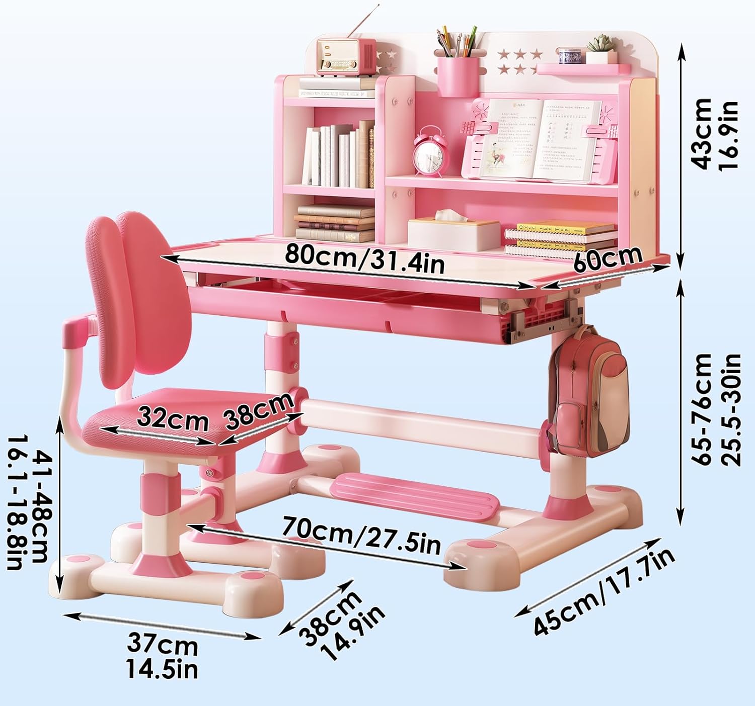 【Designed for Growing Minds】Our study tables are adjustable and ergonomic,you can easily adjust height of table and chair according to the height of the child, accompanied with children growth for long-term use. Kid study chair is perfact for children at age 3-18 Years.