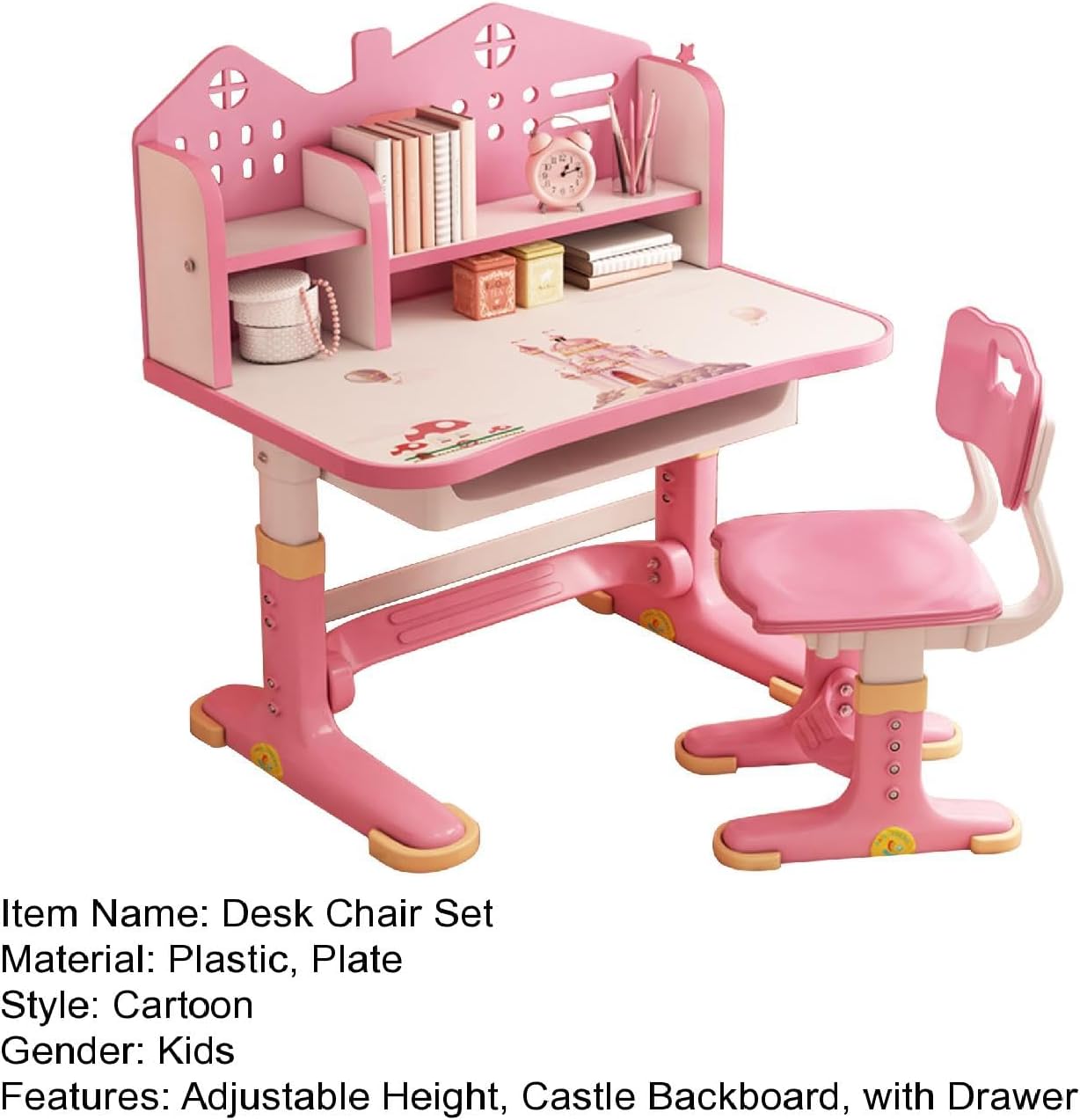 Kids Functional Desk and Chair Set, Study Desk for Children with Chair, Kids Desk and Chair Set,Height Adjustable Children School Study Desk with Storage Drawer for Boys Girls(Pink) Pink