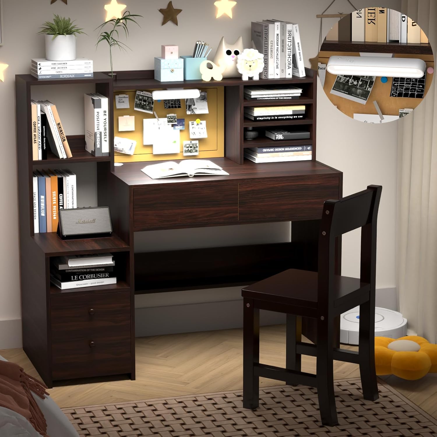 【Kids Study Table with 3-Color Lights】- kid desk equipped with detachable LED lamp,Easily paste the base of the lamp onto the computer desk for an immersive ambiance. 80° rotating multifunctional desk lamp with strong magnetic adsorption.Short press the switch to switch the light color: warm yellow, warm white, and cool white. adjust the brightness according to different scenes and needs by long pressing the switch. add a sense of glamor and style.This children’s study desk is perfect for writing, drawing, reading, and more. By adjusting the brightness, children can be more focused on learning.-WzsjU8