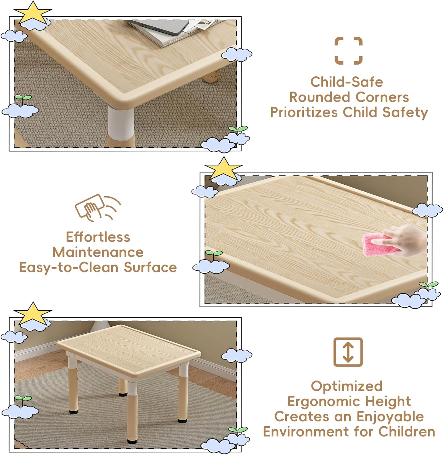 【SAFETY & GREEN】This kids table and chairs are made of environmentally friendly HDPE material, which is very strong and durable. Its quality meets American standards. Kid table and chairs