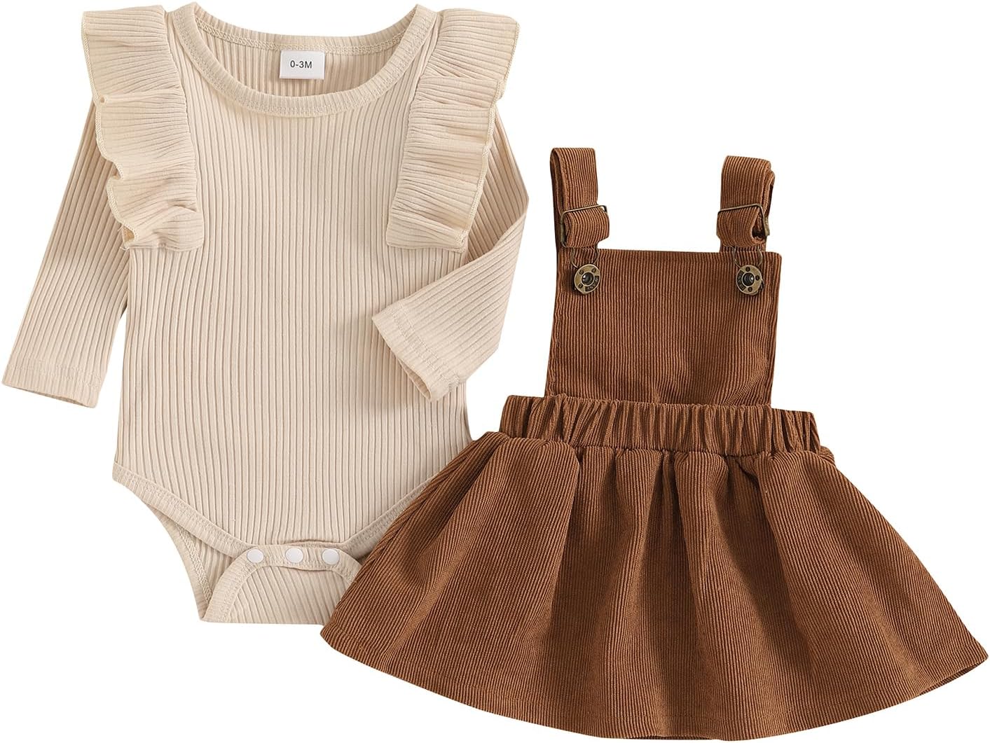 Two Pieces Baby Girl Fall Winter Skirt Set, Baby Girls Soild Color Outfits, Infant Girls Dress Set