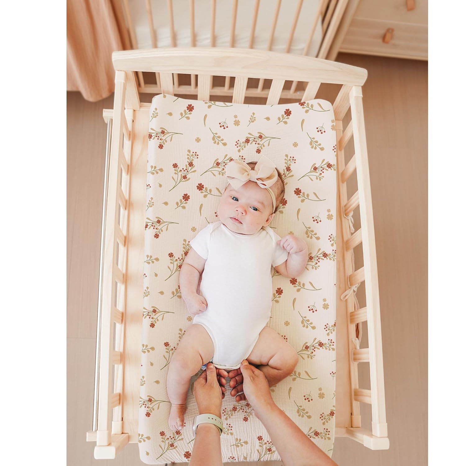 Soft and Gentle Fabric: Our muslin changing pad cover is made from soft and gentle muslin fabric, providing a comfortable surface for your baby’s diaper changes. The fabric is delicate against your baby’s skin and retains its color after being washed several times
