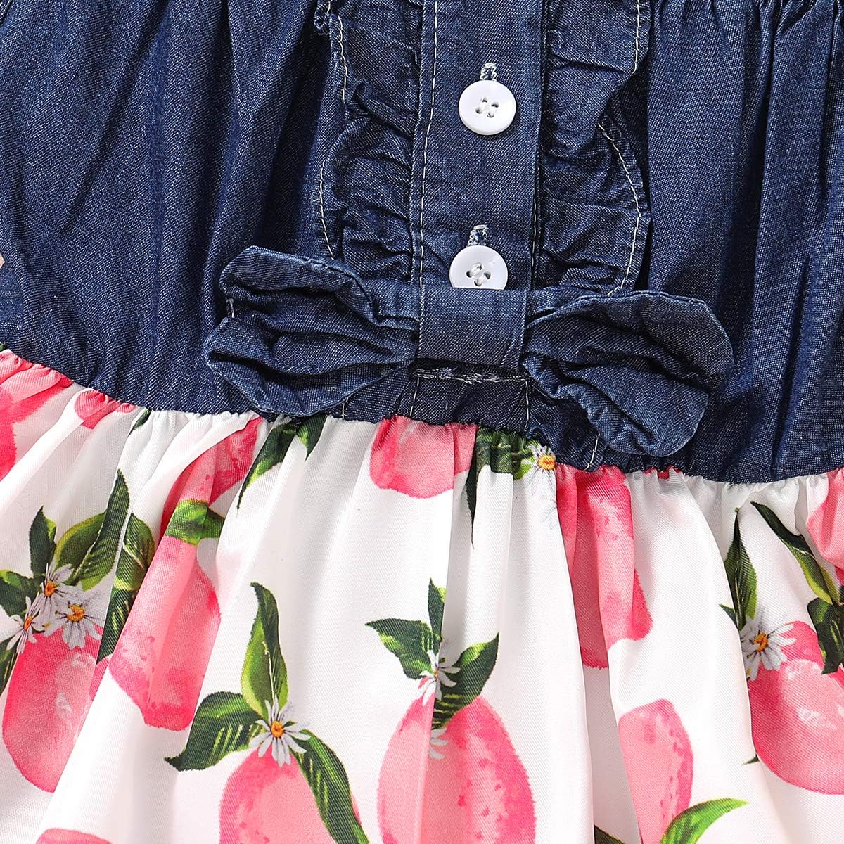 Toddler Dresses 12/18/24 Months 2/3/4/5T Girl Clothes Baby Sunflower Denim Skirt Ruffle Short Sleeve Summer Dress