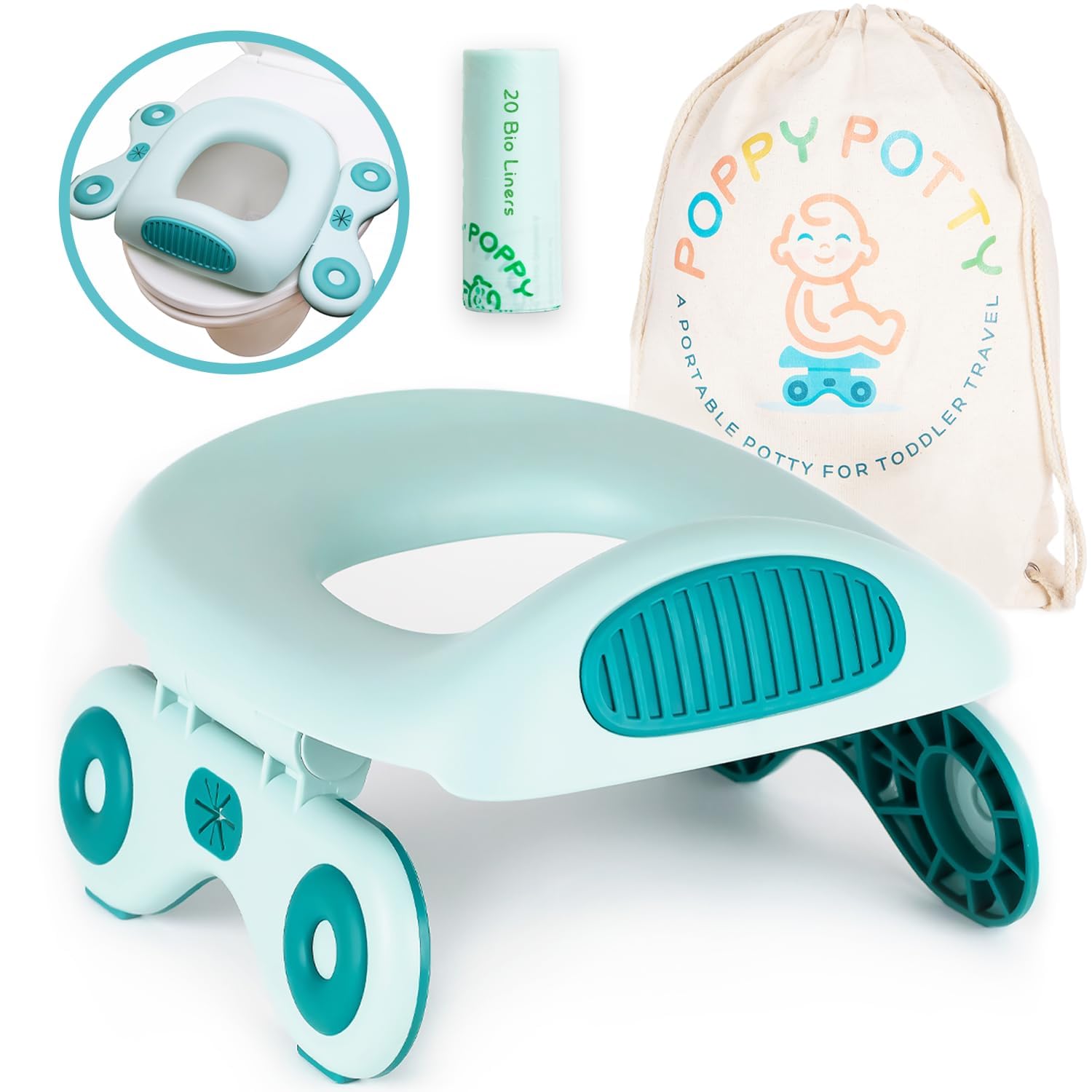 MIGHTY YET LIGHT – Don’t let its lightness fool you; our portable potty for toddler travel is a tiny titan, strong enough for kids up to 110 lbs and weighing less than 2lbs. The perfect travel toddler potty for your growing explorer