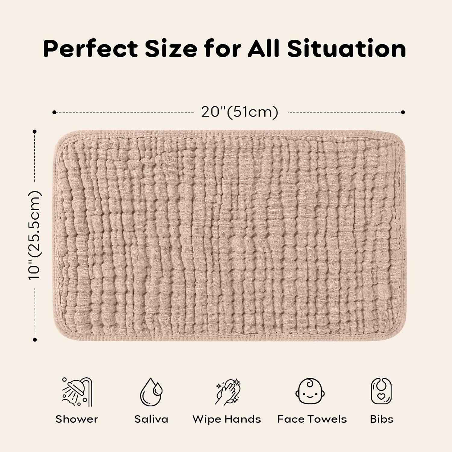 MULTI-FUNCTION – 20×10 inches, our muslin washcloths will be your favorite daily essentials as reusable baby wipes, burp cloths, baby face towels, cloth diapers, body washcloths, adult face towels and anything else that’s available. Perfect 6pcs meet your baby’s different need.