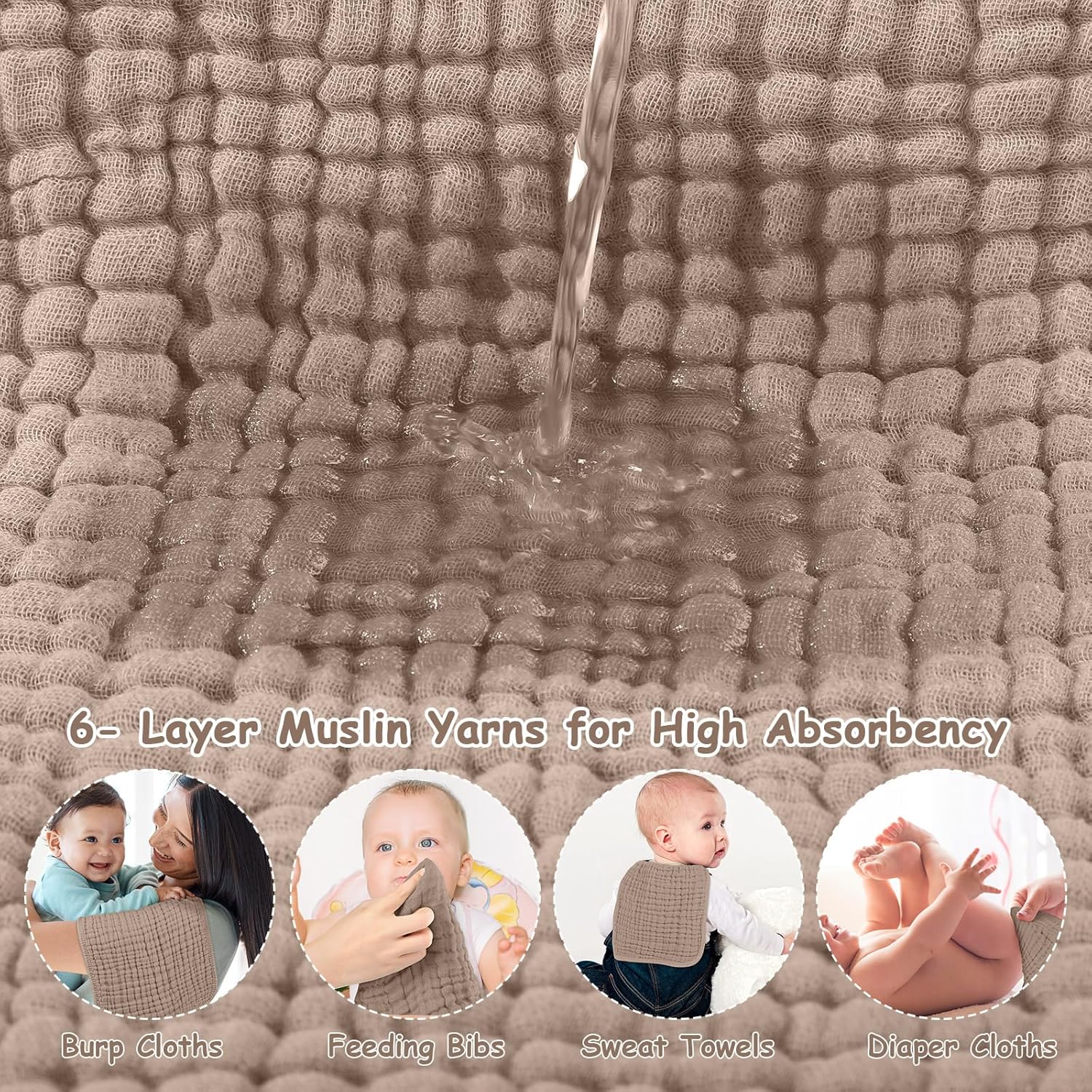 EXCELLENT ABSORBENCY – With 6-Layer thickening design fabric, these face cloths provide premium softness, breathability and durability. Soft material features its super liquid-absorbing and quick-drying nature, giving baby’s skin perfect care.