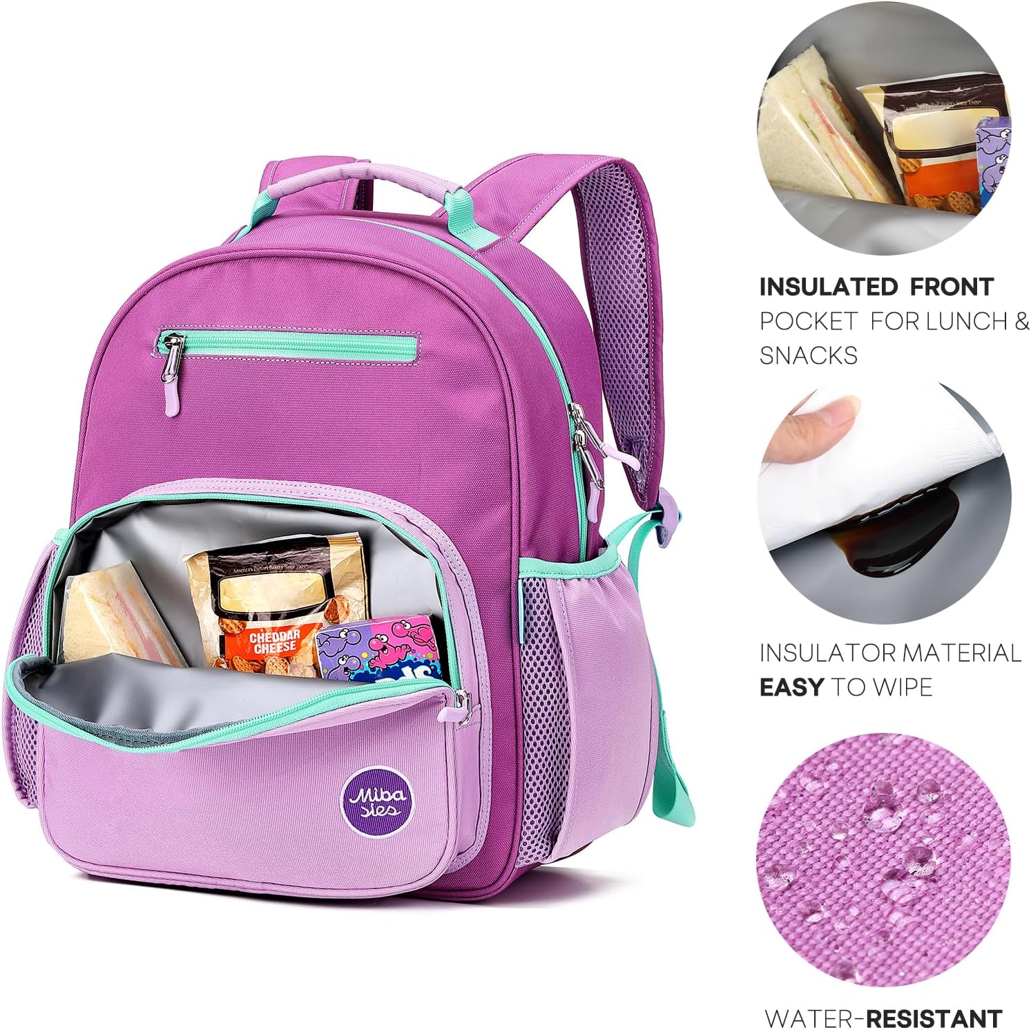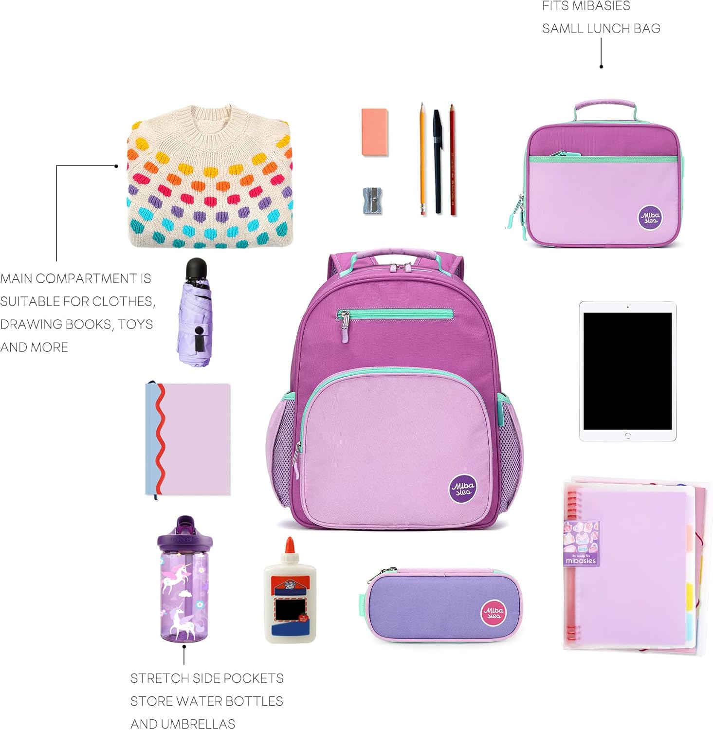 LARGE CAPACITY (12L,15*11.5*5) – Mibasies kids backpack for girls and boys has a spacious space. The front pocket is designed with insulating material, so it can put down snacks or lunch and easily keep food fresh and clean, It is also convenient to wipe even if it gets dirty. The main pocket can be used to store large items, including books and clothes, folders. The side pocket is used to store water cups, umbrellas and other items.