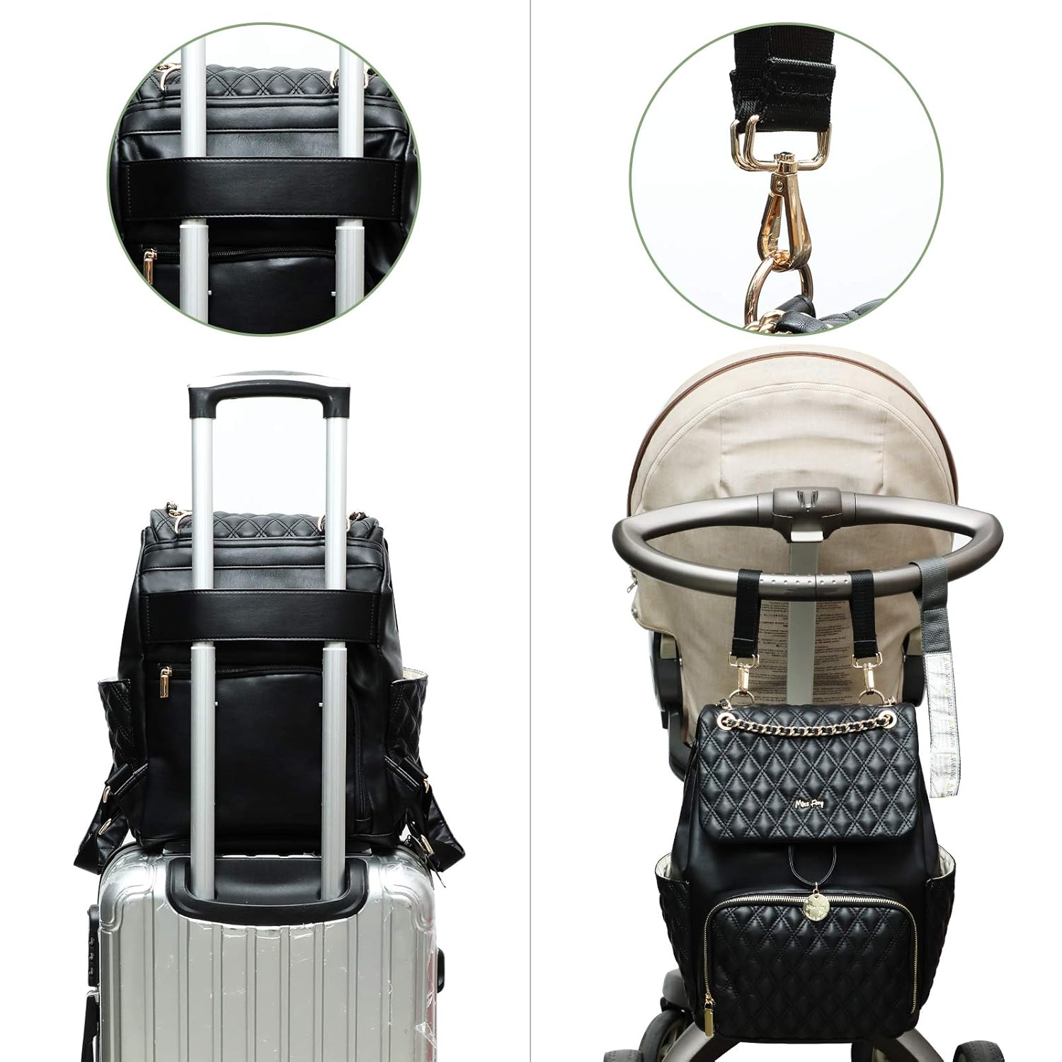 Let mom only carry a bag to meet a variety of different occasion. Every of high quality vegan leather diaper bags has functional design and accessory, can be well organized and be carried in different ways.