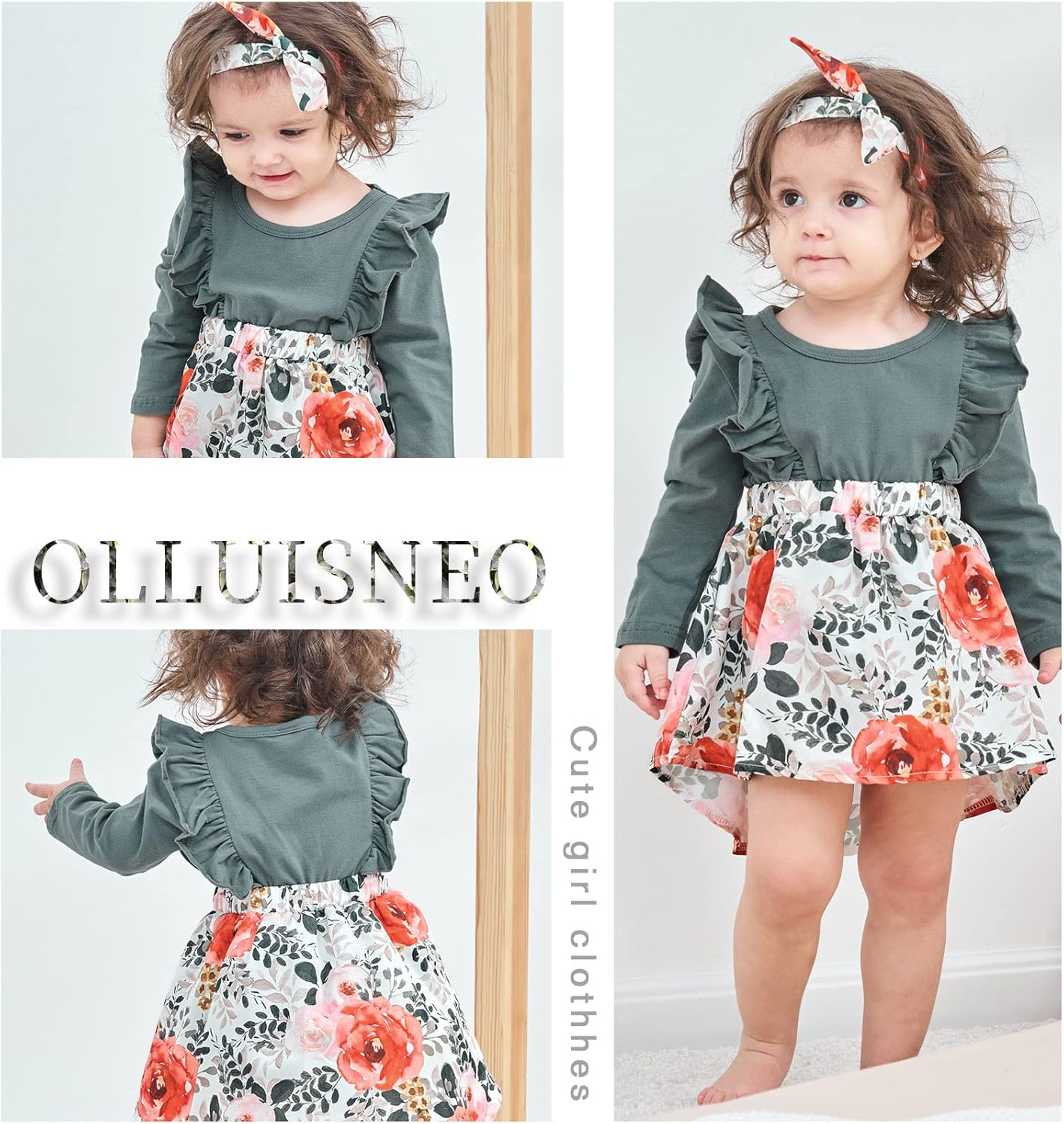 OLLUISNEO Newborn Baby Girl Dress Infant Ruffle Sleeve Romper Outfits Flower Girls Dresses Baby Girl Clothes Summer Fall