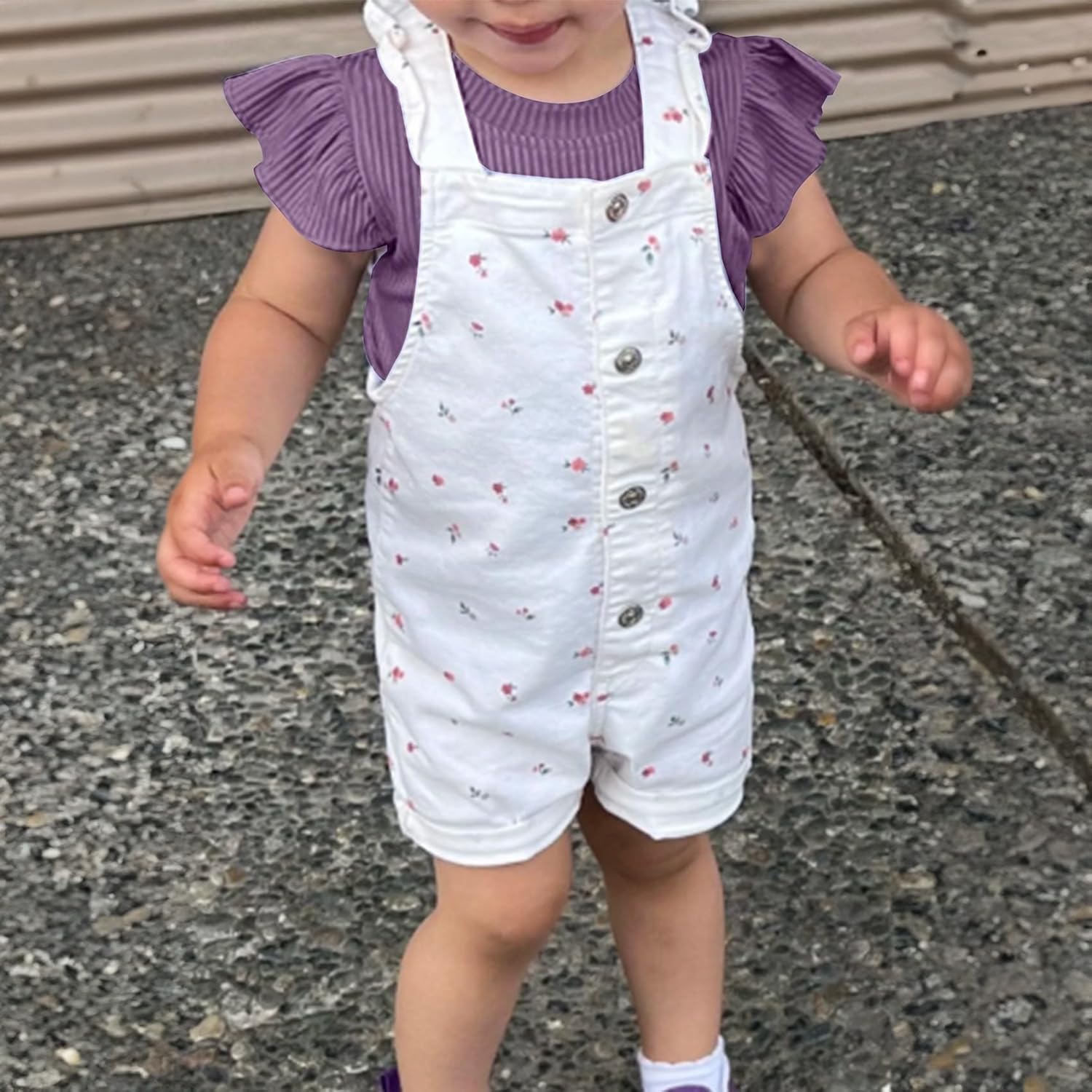 OPAWO Toddler Girl Shirts Ruffle Long/Short Sleeve Baby Girl T-Shirts Kids Blouse, Ribbed Toddler Girl Tee Tops 2-Pack 12M-6Y