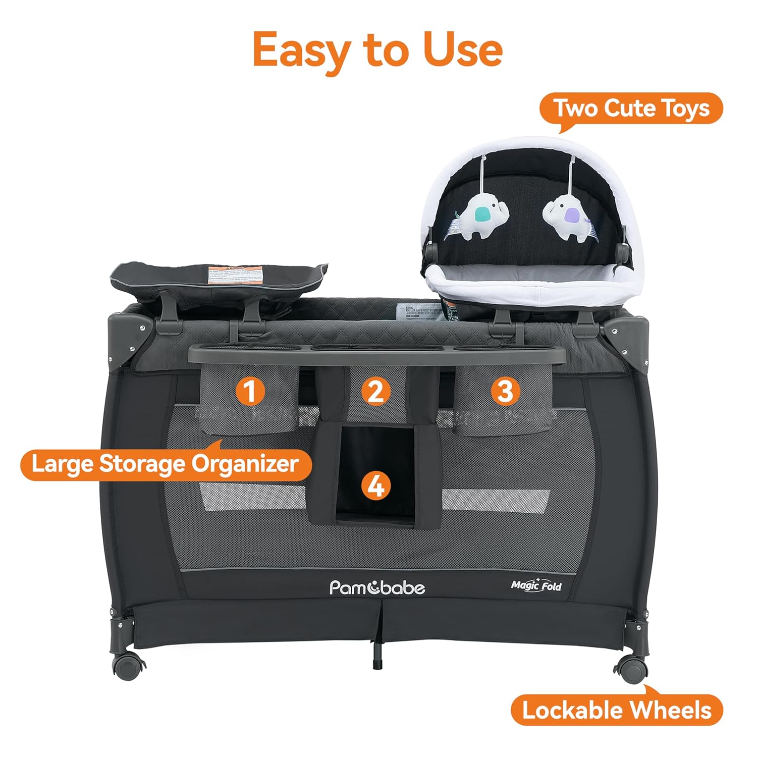 All-in-One Functionality – This playard adapts to your baby’s growth and development needs, from newborn to toddlers.