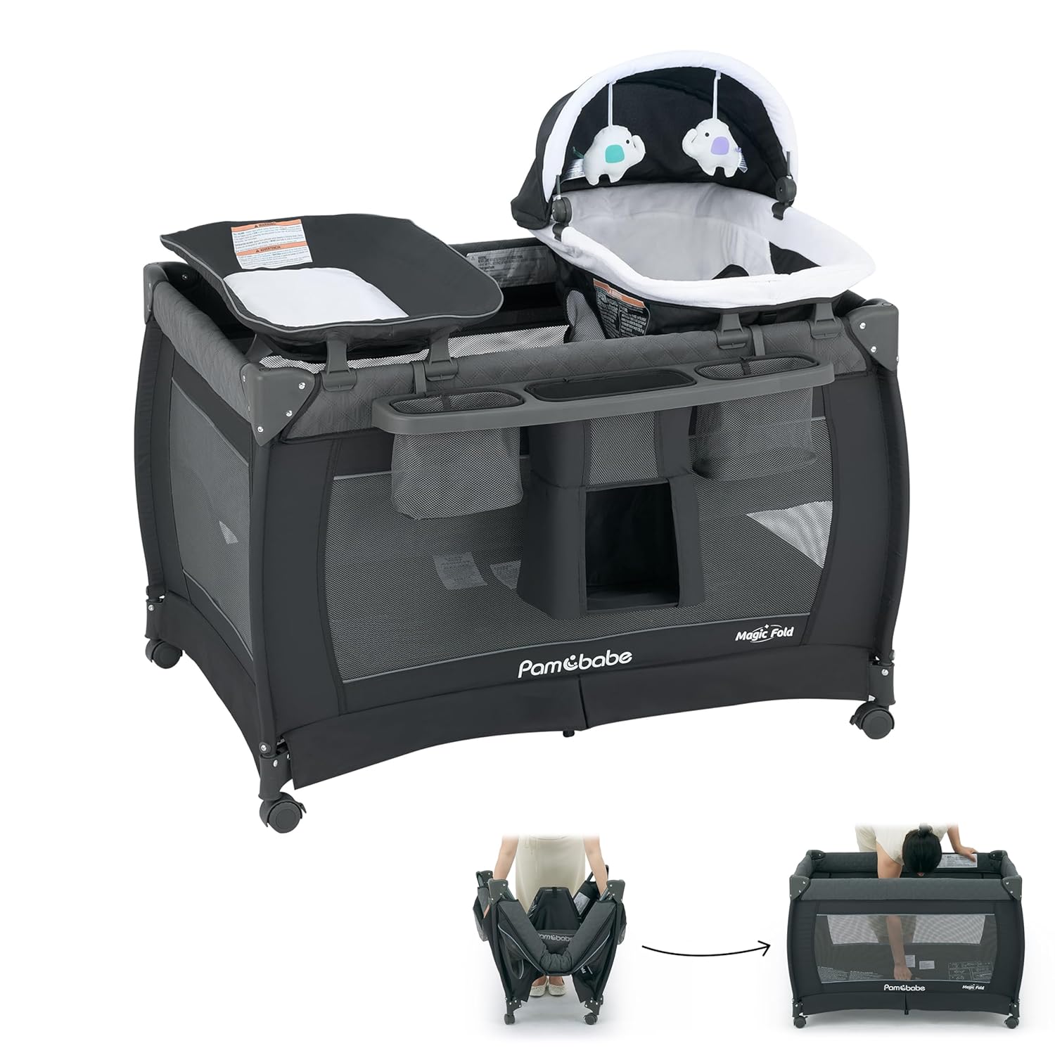 Pamo Babe Playard Magic Fold Playpen Foldable Playard for Baby Portable Playpen Deluxe Nursery Center with Diaper Changer