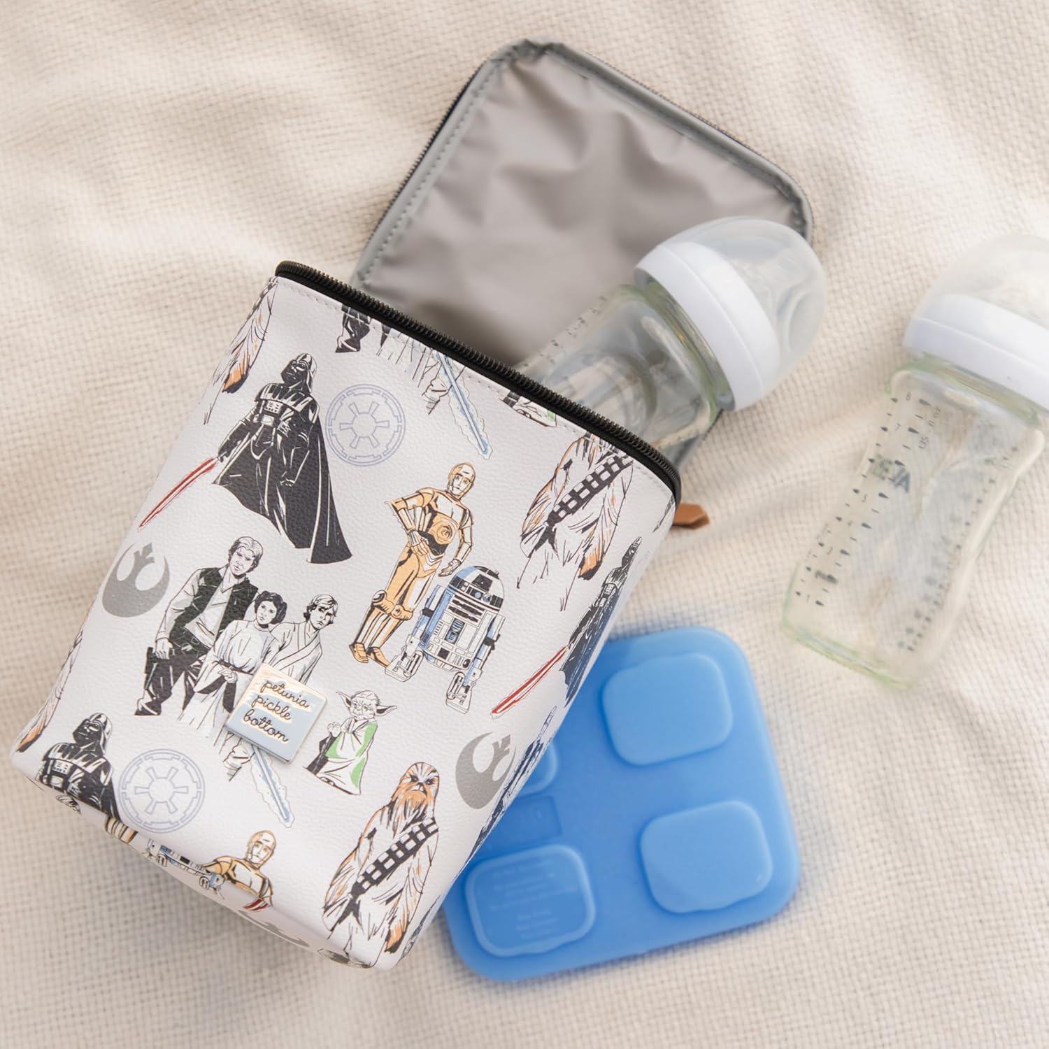 FEATURES: The Baby Bottle and Snack Cooler features an insulated PEVA interior as well as a secure zip-around opening. Along with genuine leather trim and an easy to wipe exterior, this product makes cleaning messes easy and convenient.