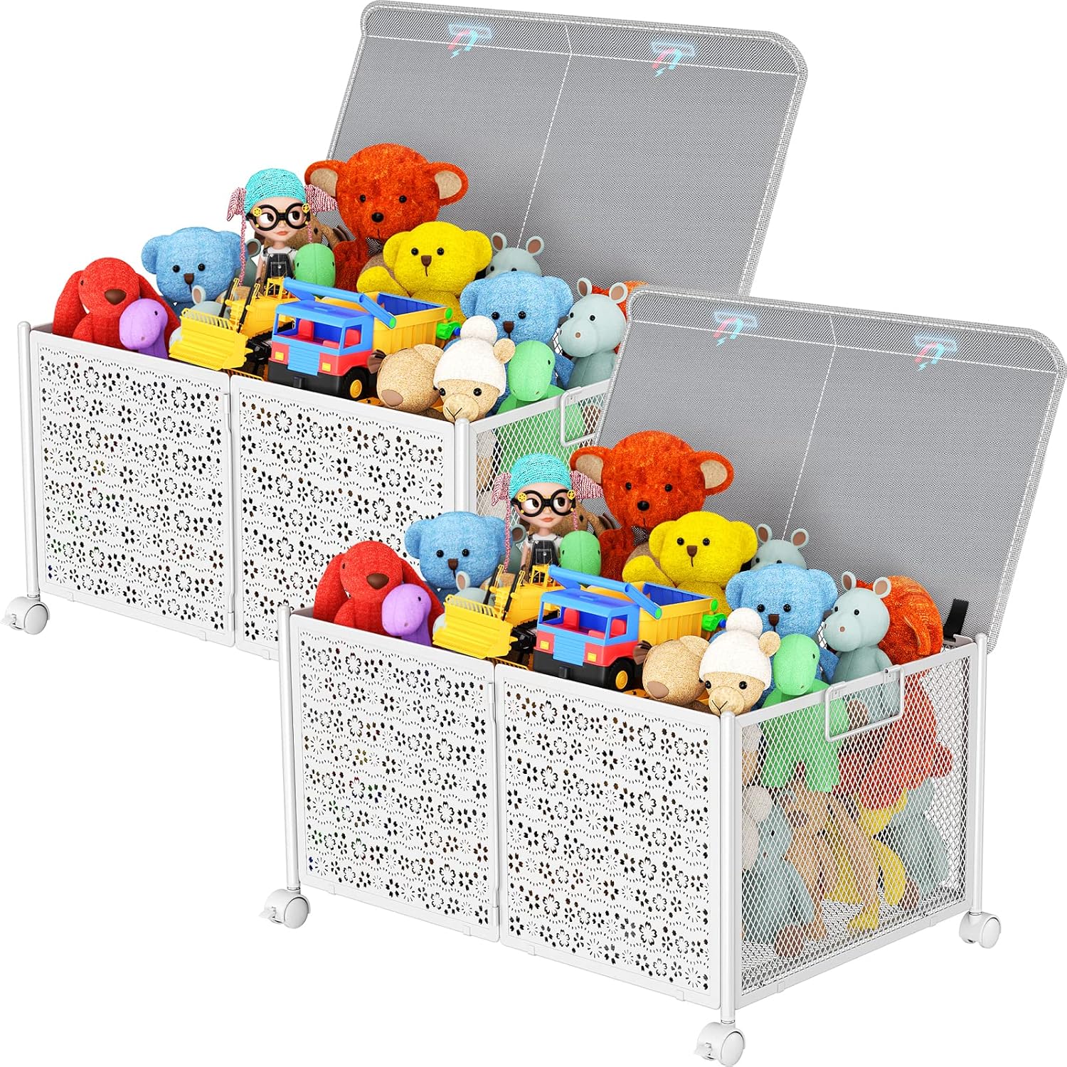 PHINOX Toy Box Storage, Toy Chest Toy Organizers and Storage Bins, Large Toy Box for Boys Girls, 70L Toy Storage Organizer with Wheels, Collapsible Metal Kids Toy Storage for Nursery, Playroom-2PACK