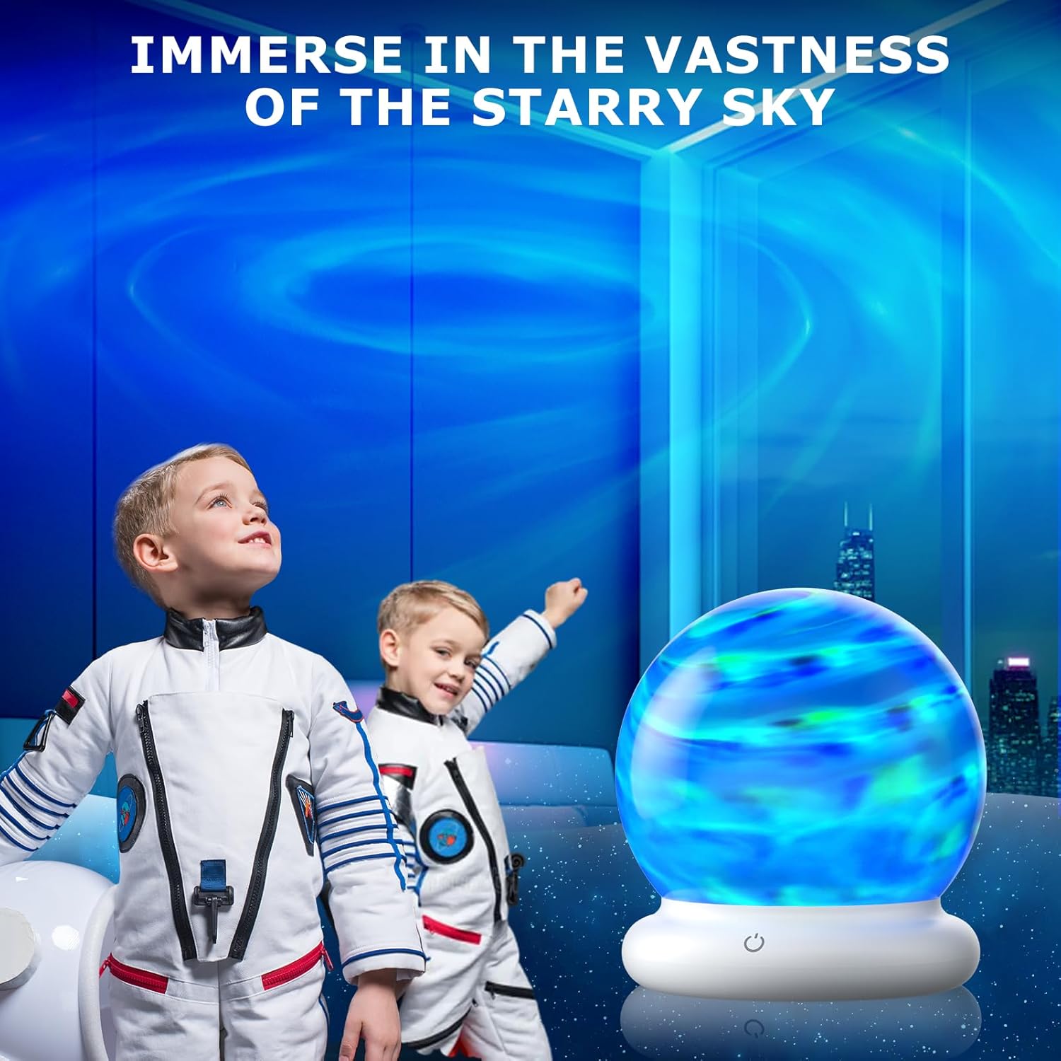 【TOUCH & REMOTE CONTROL】This planet-shaped night sky projector has touch and remote control functions(within 5 meters) which is very convenient to use. Add a touch of luxury to any room. It is made of high-quality polypropylene material, lightweight and suitable for daily use