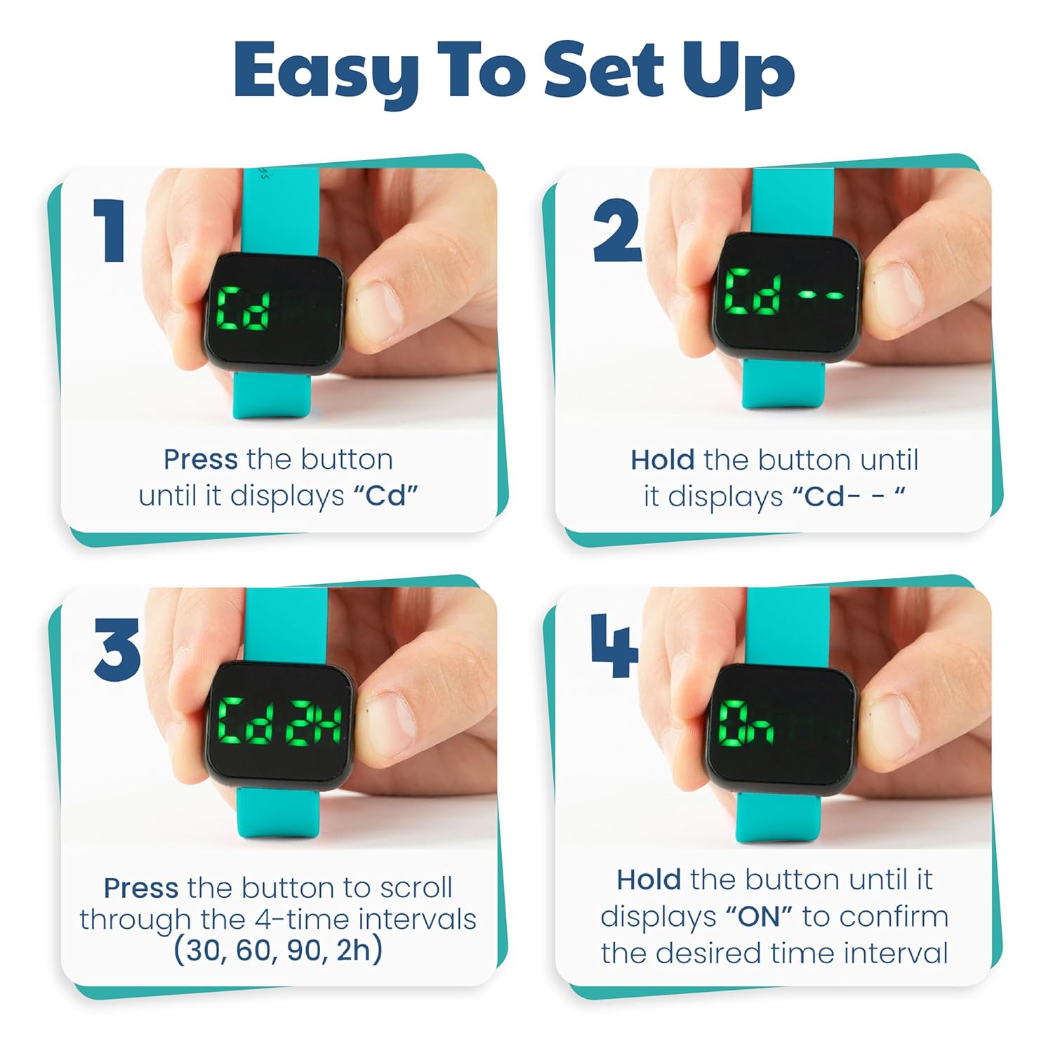 FUN MELODY OR SILENT ALARM – the watch is programmable to play the tune “Wheels on the Bus” to remind your kid to use the toilet every 30, 60, 90 mins or 2 hours, and automatically recurs. The watch can switch from music to vibration if needed for school or quiet areas.