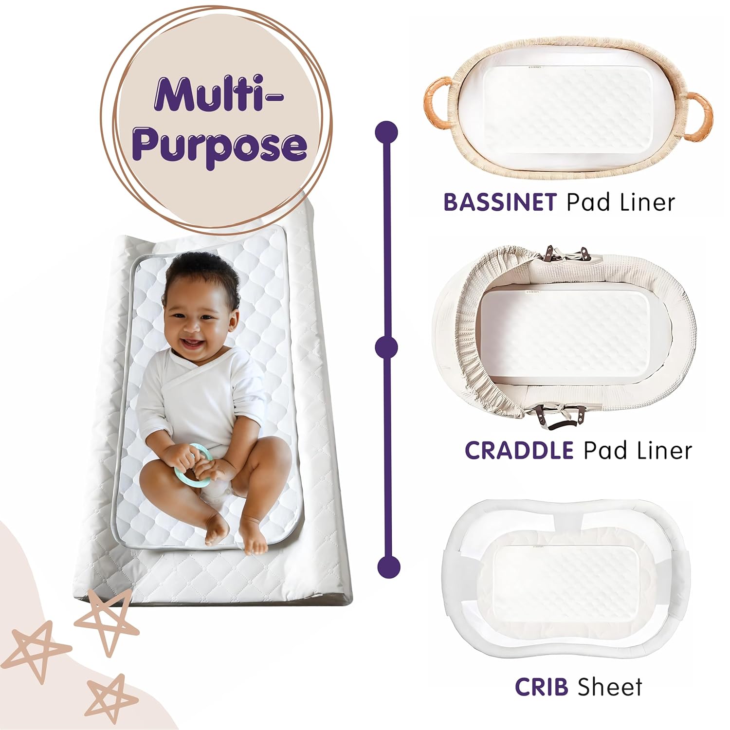 Large Size & Multipurpose: Our diaper changing pad liner measures 14” x 27.5″, surpassing the size of standard brands. It is ideal for use on standard changing pads, bassinets, or on-the-go. Versatile enough to be used in strollers or on car seats, its large size ensures maximum coverage and absorption