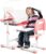 Rengue Kids Desk and Chair Set Height Adjustable School Study Desk and Chair with 55° Tiltable Desktop, 3 Modes&3 Brightness LED Lamps, Storage Drawer and Metal Hook for Boys Girls, Pink