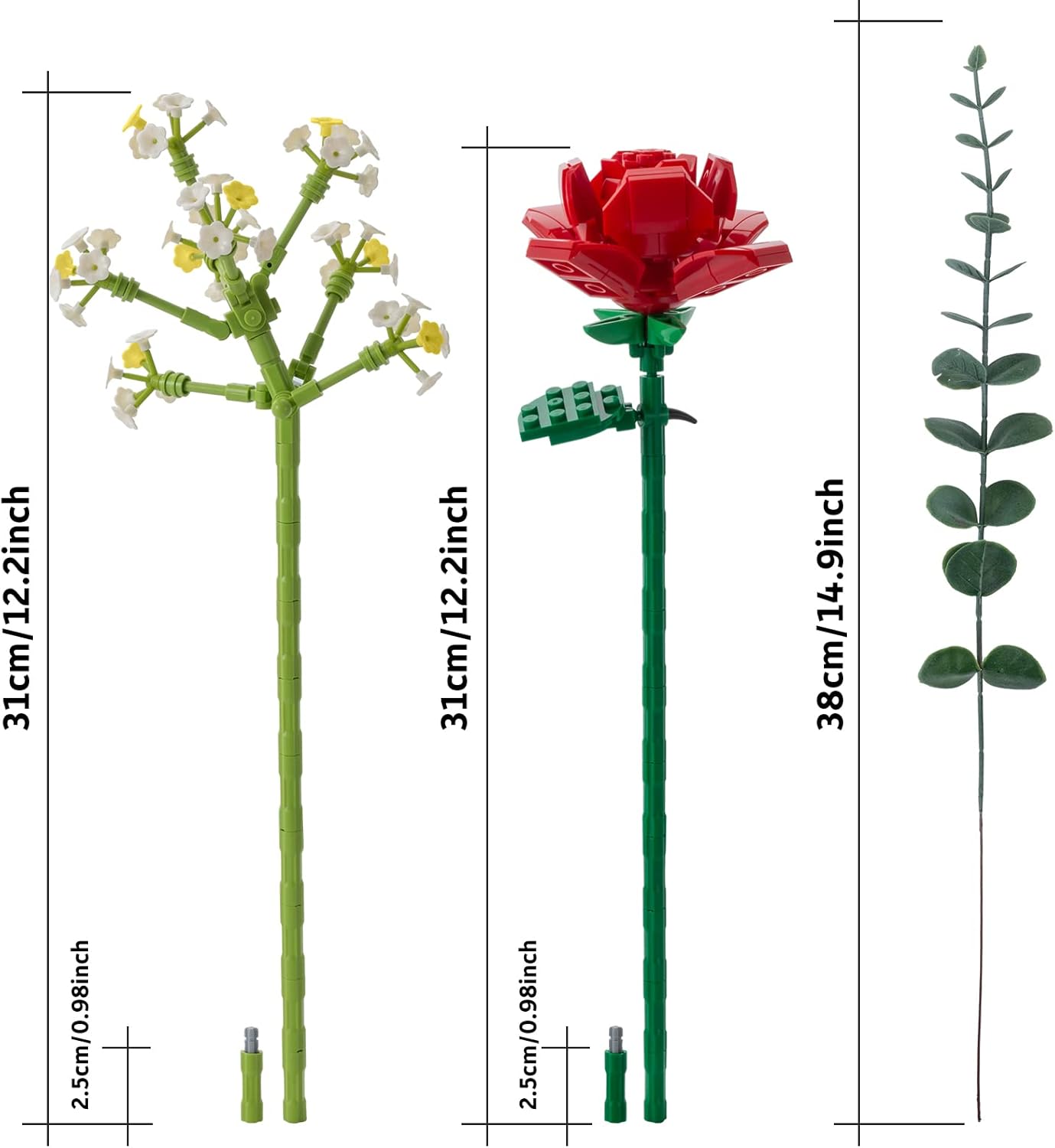 Building Blocks Flowers Newest Adjustable Length Stem