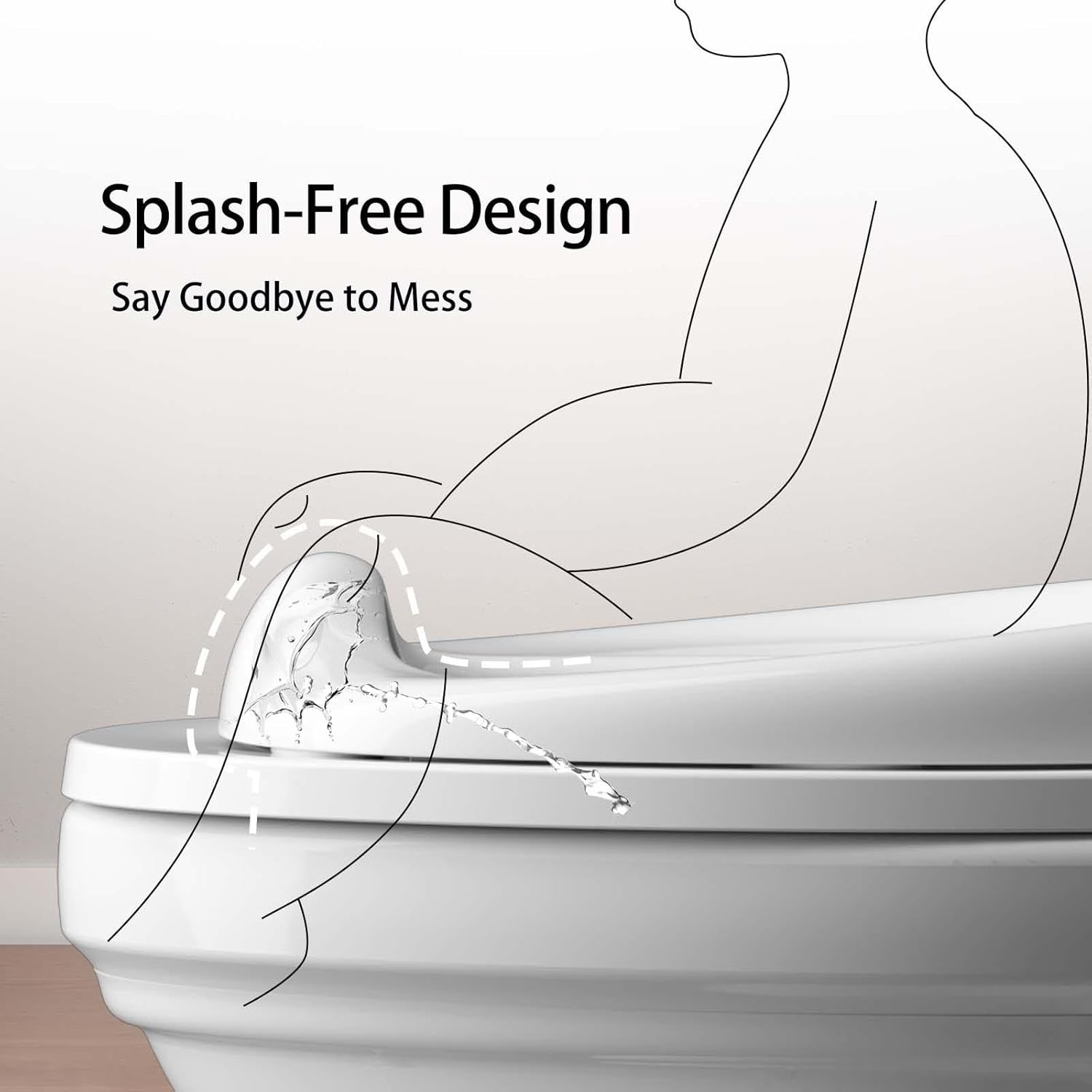 R&T potty training toilet seat features a built-in splash guard to guide urine into the toilet, reducing mess on the floor.